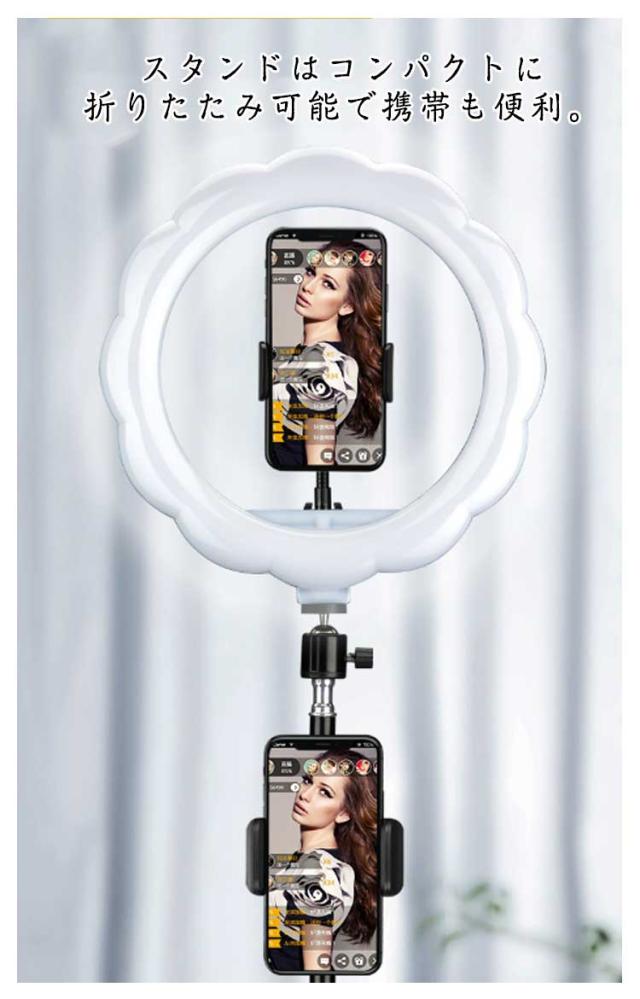 スタンド 照明 スマホスタンド リングライト スマホ ライトスタンド セット スマホライトスタンド 折り畳み 撮影用ライト LEDライト LED 明るさ調節 3脚スタンド 角度調整 直径26cm