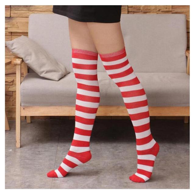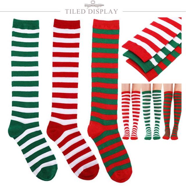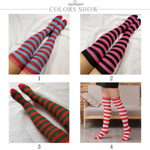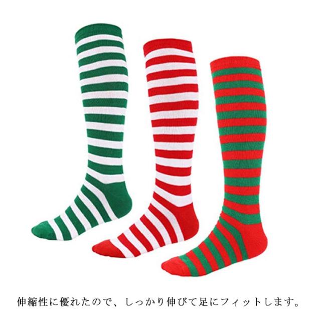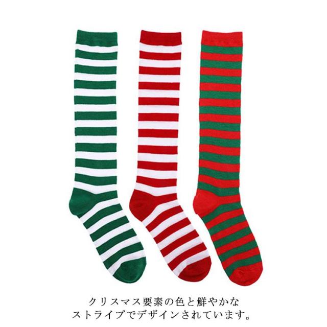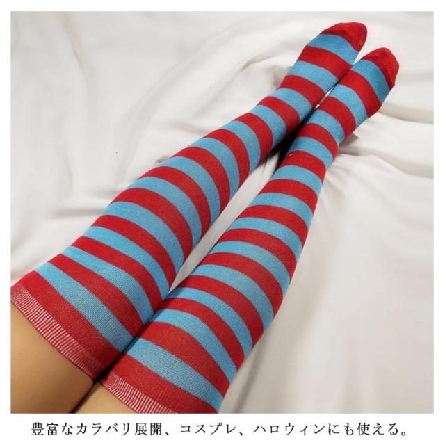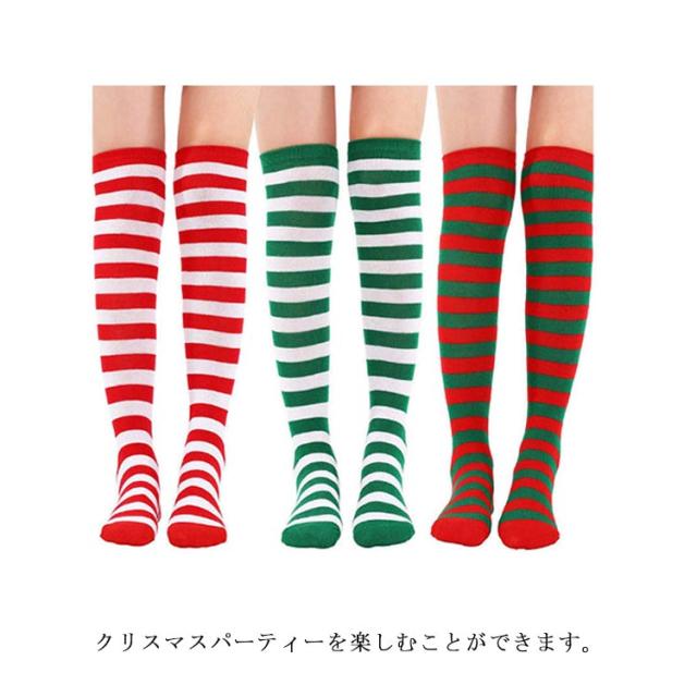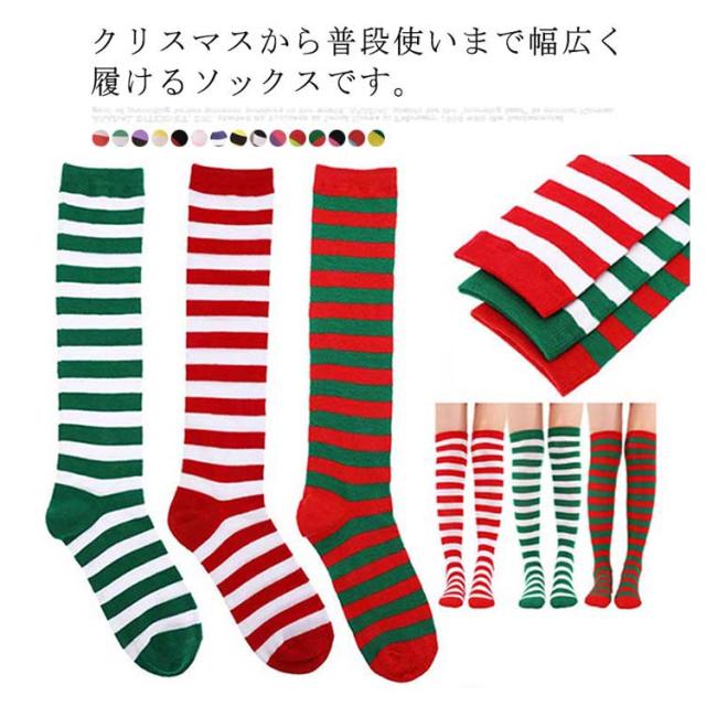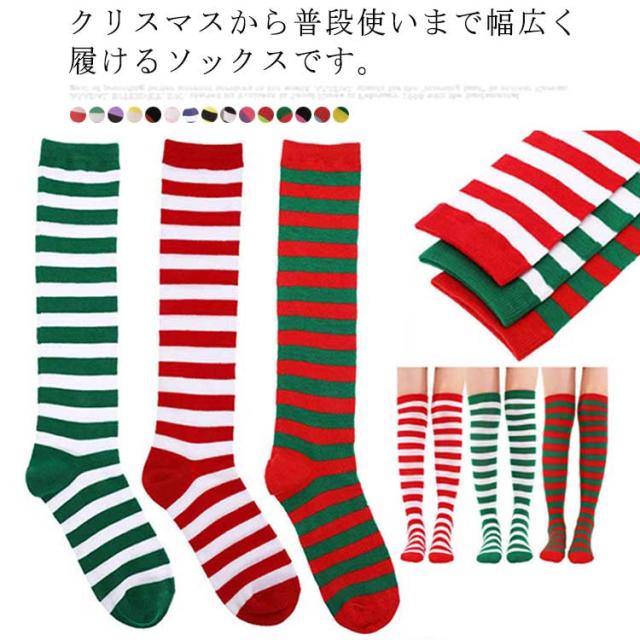 クリスマス ニーハイ ソックス ボーダー サンタクロース コスプレ道具 靴下 コスチューム 仮装 ハイソックス オーバーニー 膝上 ストライプ柄 コスプレ衣装 送料無料