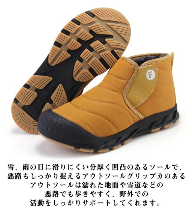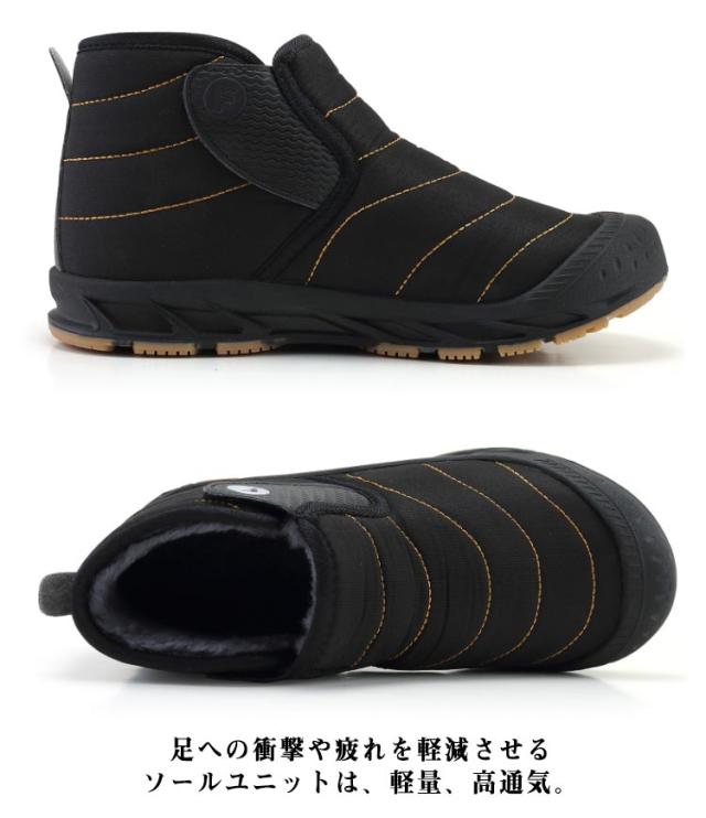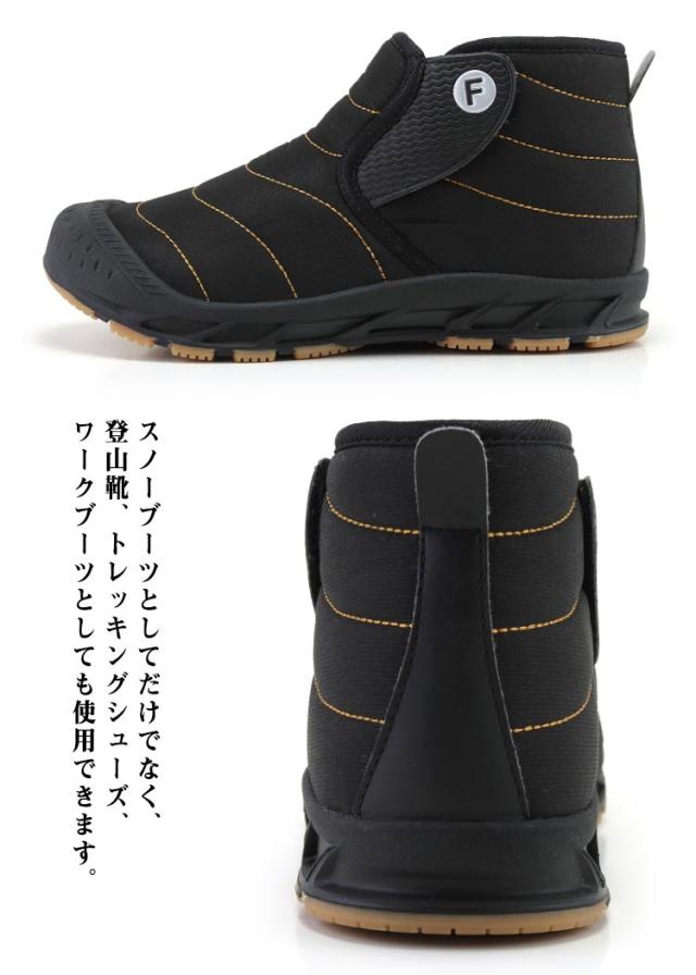 | 季節の防寒・防滑対策に、一足持っておくと便利なスノーブーツ。 スノーブーツとしてだけでなく、登山靴、トレッキングシューズ、ワークブーツとしても使用できます。 足への衝撃や疲れを軽減させるソールユニットは、軽量、高通気。 雪、雨の日に滑りにくい分厚く凹凸のあるソールで、悪路もしっかり捉えるアウトソールグリップカのあるアウトソールは濡れた地面や雪道などの悪路でも歩きやすく、野外での活動をしっかりサポートしてくれます。 内側には足先までふかふかと触り心地のよいフリースのような素材を起用し、足を優しく包み込むので寒い外気から足を守ります。 | |
