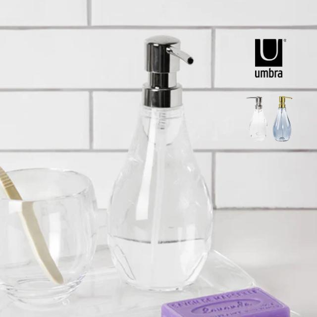 umbra アンブラ ドロップレット ソープポンプ(ソープボトル 296ml おしゃれ ソープディスペンサー クリア 透明 液体せっけん 液体石けん 洗面所 キッチン 手洗い 洗面台 液体石鹸 液体ソープ)
