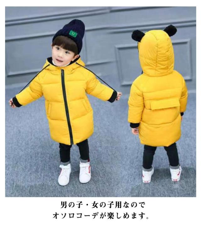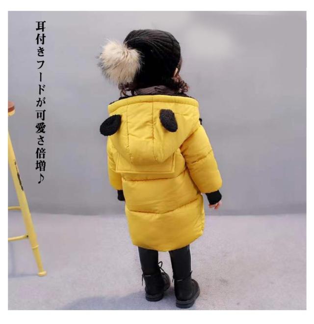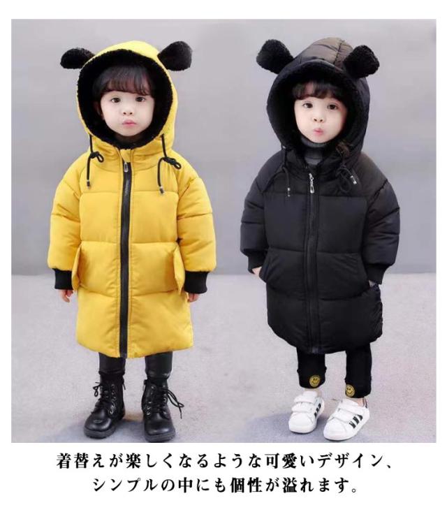 ダウン風コート ロングコート 中綿コート 130 暖かい 女の子 男の子 カラバリ お揃い 中綿ジャケット フロントジッパー クマ耳付き ベビー 子供 ダウンジャケット キッズ 80 ベビー服 子ども服 90 100 110 120 冬着