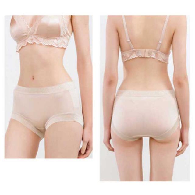 | 上質天然シルク100%を贅沢に使ったショーツ。 足ぐりとウエスト部分のゴムに花柄をあしらった上品で華やかな1枚です。 しっとりとなめらかな手触りはもちろん、生地が自然に伸びるからヒップに優しくフィットし、快適な履き心地を実現しました。 後ろ身ヒップの被りを大きくし、すっぽりヒップを包み込むことで、お尻に食い込みにくいのも嬉しいポイント。 クロッチ部分は上質シルク100%を二重使用!更にフ清潔さと快適さを重視します。 | |