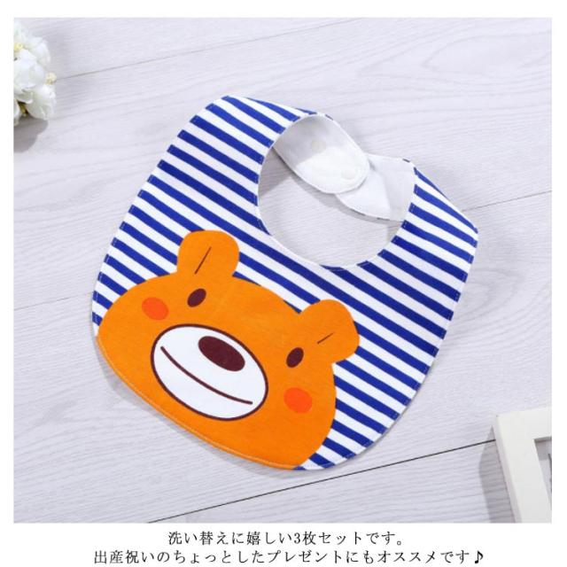 3枚セット 食事スタイ おしゃれ 男の子 女の子 セット ベビー よだれかけ かわいい 赤ちゃん 防水 クマ ボーダー アニマル 可愛い