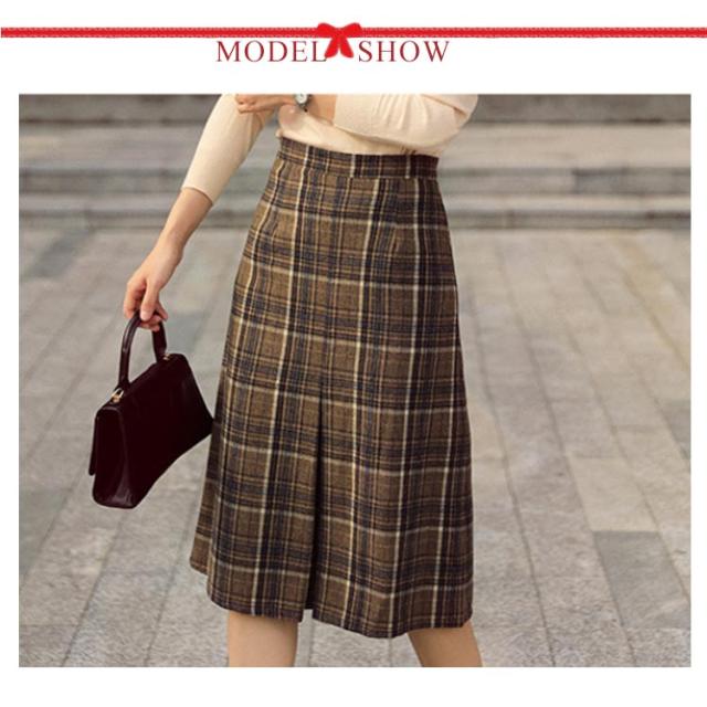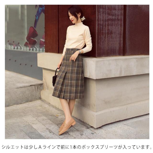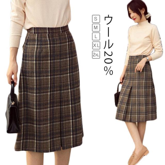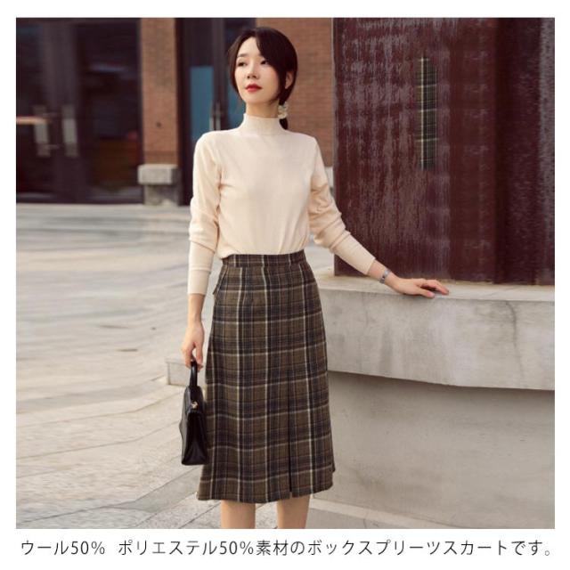 ボックスプリーツスカート ウール20% ウールタッチ 膝丈チェックスカート ひざ丈 チェック スカート ウールスカート チェックスカート ウール20% ふんわり ボトムス きれいめ 暖か 上品 チェック柄 秋 冬 秋冬