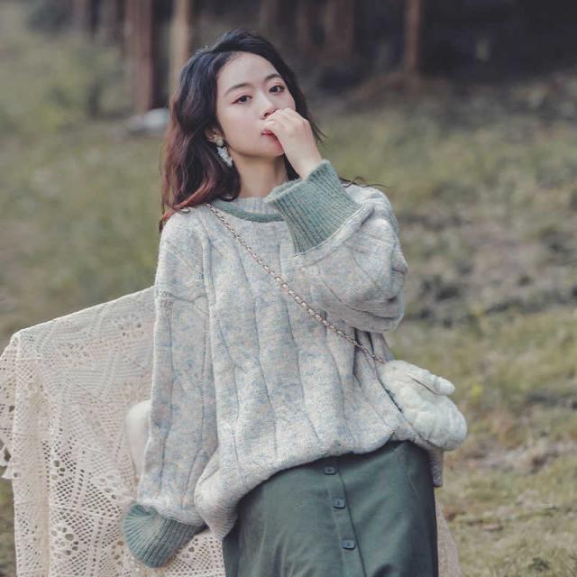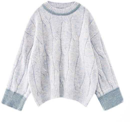 ニットトップス セーター ニット レディース ケーブル編みラウンドネック トップス 秋 ゆったり 長袖 ドロップショルダー