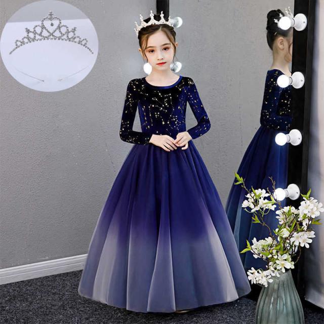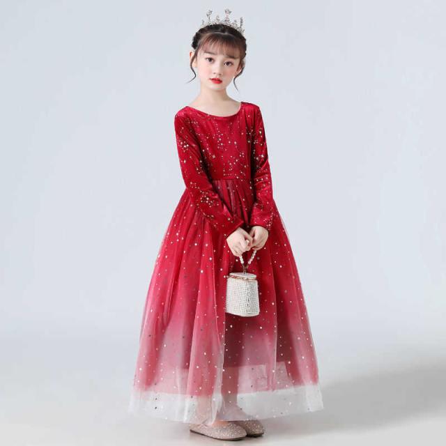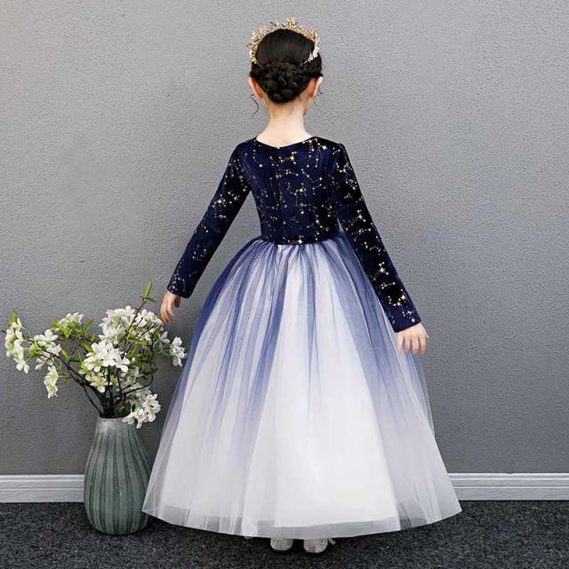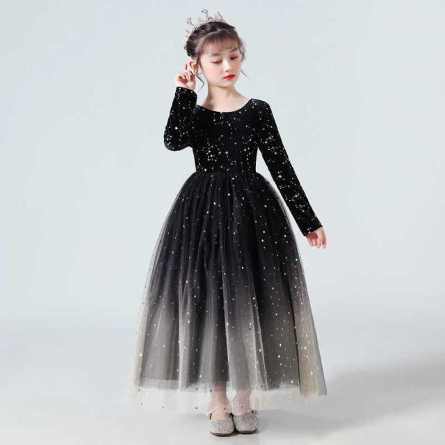 子供ドレス ピアノ発表会 長袖 ジュニアドレス 演奏会 結婚式 キッズ こども コンクール 子供服 女の子 フォーマル グラデーション キラキラ かわいい 裏起毛 ブラック ブルー レッド ホワイト