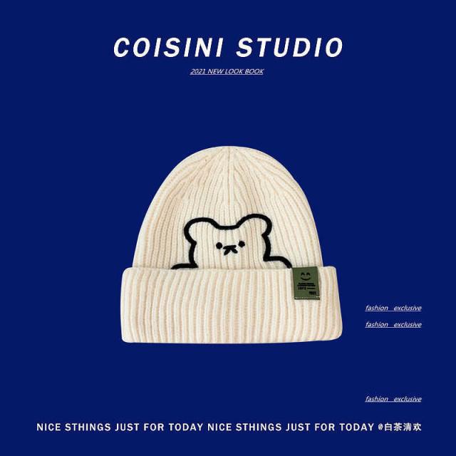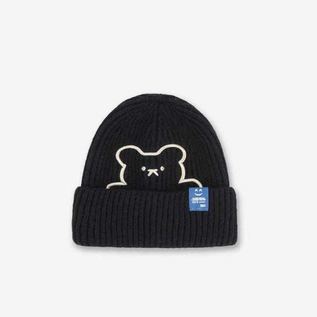 ニット帽 厚手 レディースファッション ラベル ニットキャップ ワッチキャップ 帽子 メンズ レディース ニット 帽 クマ ロゴタグデザイン 男女兼用 スキー スノボー 秋 冬 カラーバリエーション 防寒 プレゼント 56-58cm 送料無料