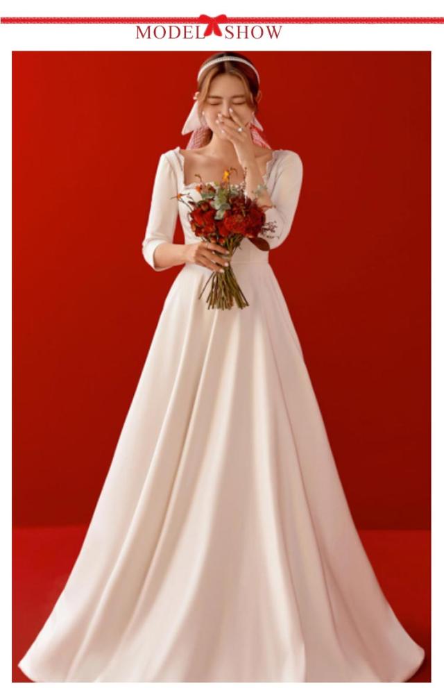 ウェディングドレス 結婚式 二次会 花嫁 ドレス 白ワンピース エンパイアライン ロングドレス 披露宴 袖あり vネック ハイウエスト上品 エレガント エンパイアライン 無地