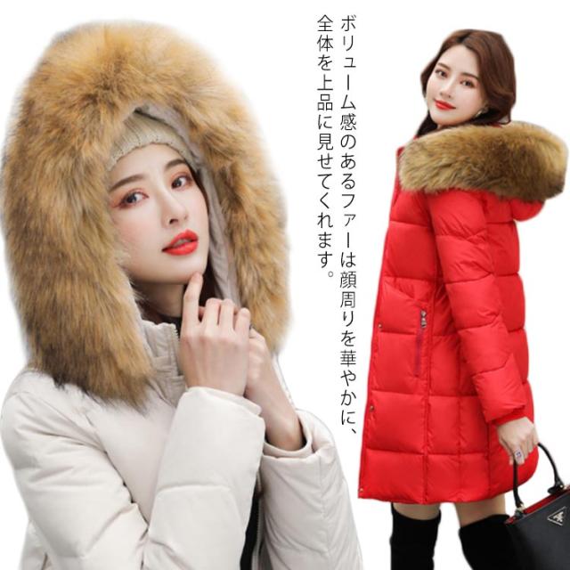 ダウンコート レディース ミドル アウター ダウンジャケット ファーコート 秋冬 ミドル丈 ダウン 防寒 保温 撥水 ダウン90% 軽量 ボリューム ファー きれいめ あったか 着痩せ デイリー 普段使い 通勤 50代 40代 30代 20代 大きいサイズ M-4L