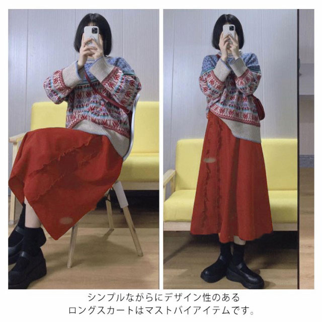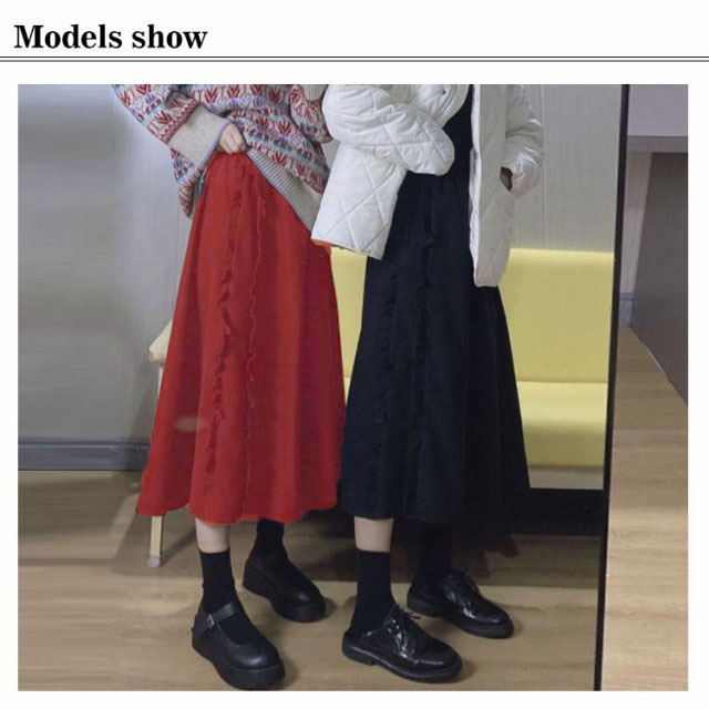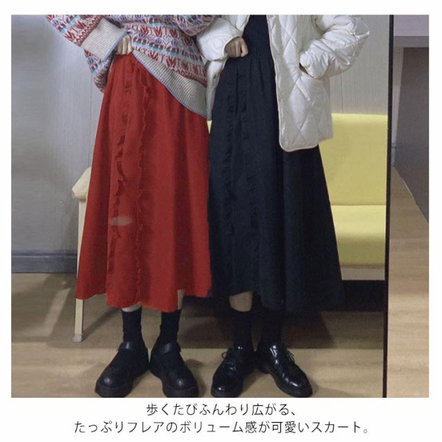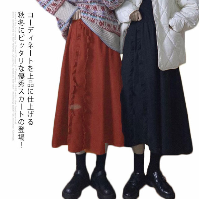 【送料無料】スカート ロング 秋冬 無地 ミモレ丈 レディース フレア Aライン ハイウエスト ゴムウエスト ひざ下 フレアスカート 春 膝下 コーデュロイ 大きい サイズ おしゃれ かわいい シンプル 黒 ブラック