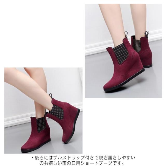 レインブーツ レディース ショート サイドゴア ウェッジソール 5.5cmヒール 厚底 歩きやすい 痛くない ゴム 長靴 雨靴 おしゃれ