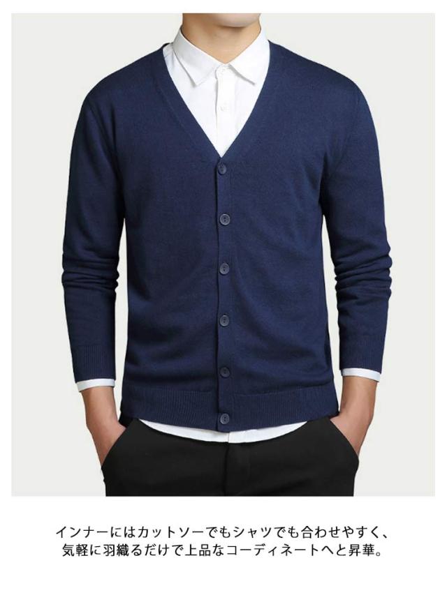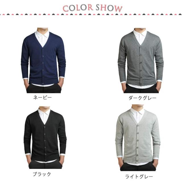 カーディガン メンズ ニットカーディガン ニットソーカーディガン ボタン Vネック 長袖 無地 春 秋 男性