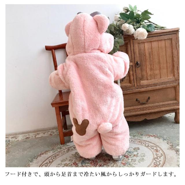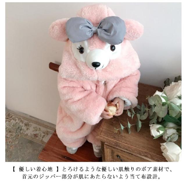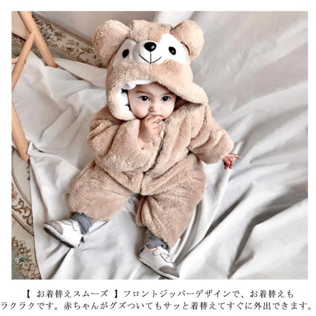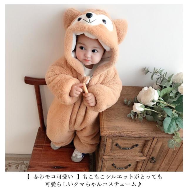 カバーオール ジャンプスーツ 着ぐるみ パジャマ 子供 ボア くま ベビー もこもこ 秋冬 春 秋 冬 あったか 男の子 女の子 ベビー服 ハロウィン 衣装 クマ 足つき コスプレ 80cm 90cm 100cm 110cm 120cm