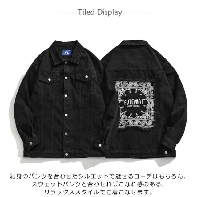 ジージャン ペイズリー柄 メンズ ペーズリー 黒 デニムジャケット メンズジャケット 切り替え 切替 秋物 ジュアルジャケット ブラック Gジャン ワークジャケット 春服 バンダナ柄