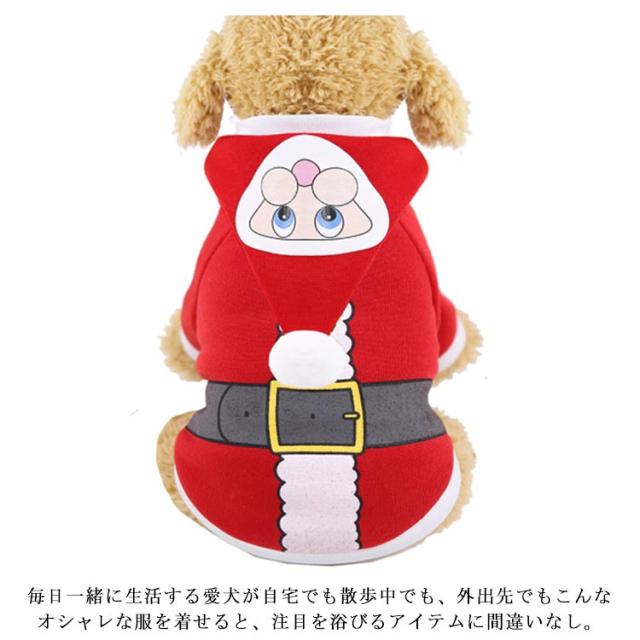 | この犬の服は性別を問わないデザインで男の子にも女の子にもぴったりします 。毎日一緒に生活する愛犬が自宅でも散歩中でも、外出先でもこんなオシャレな服を着せると、注目を浴びるアイテムに間違いなし。 可愛いサンタさんデザインで落ち着いた色合い!生地も柔らかく、汚れにくく、着心地素晴らしい。着脱簡単でき。抜け毛予防用に部屋着としても使えます.アウトドア、お散歩、お出かけなどに大活躍! ワンちゃんの体をすっぽり包み込んで、抱っこされているような安心感を与えます。秋や冬に屋外歩行のソフトで快適、ここちがよい。 寒い冬でも、これで寒さ対策! クリスマスと新年に大人気な赤色でワンちゃんにも祝日の雰囲気に溶け込んで行こう。祝日の雰囲気は満点。クリスマスや冬のパーティの時期に最もぴったり! | |