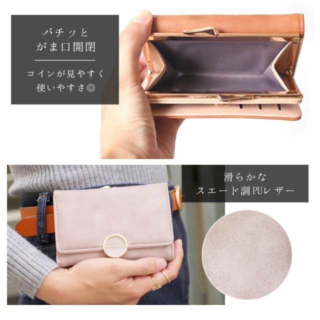 財布 レディース 小さめ コンパクト ブランド がま口 小さい ミニ財布 人気 三つ折り ミニ かわいい 三つ折り財布 さいふ 可愛い おしゃれ 使いやすい 大容量 黒 カード入れ コンパクト財布 ハーフ ラウンド モチーフ PUレザー がま口財布 シンプル 大人 カジュアル