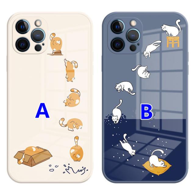iphone 13 13pro mini pro max ケース iphone 12 12pro mini pro max ケース スマホカバー 耐衝撃 軽量 カメラ保護 指紋防止 レンズ保護 フルカバー iPhone11 pro pro max ケース かわいい 猫 背面ガラス