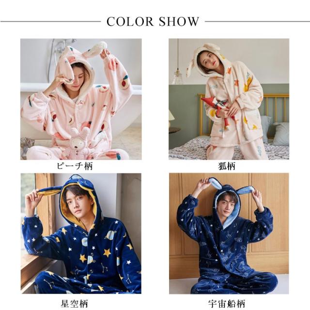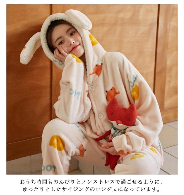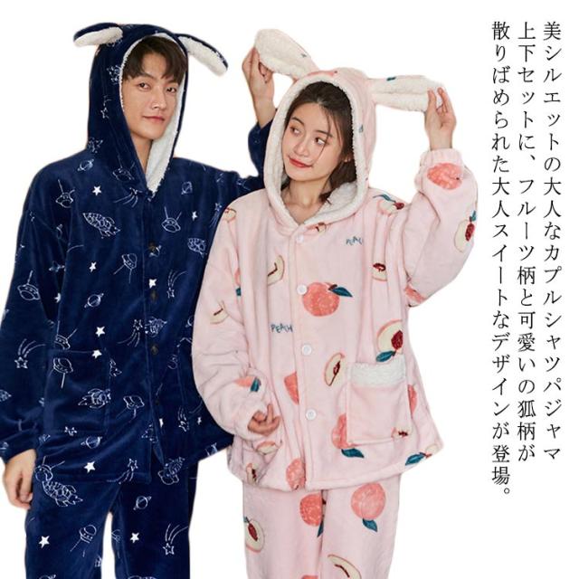 ルームウェア パジャマ とろみタッチパジャマ 上下セット レディース かわいい 部屋着 もこもこ おしゃれ 大きいサイズ 冬 大人 長袖 ふわふわ ナイトウエア 厚さ フルーツ柄 狐柄 星空柄 リラックスウェア ファッション 防寒