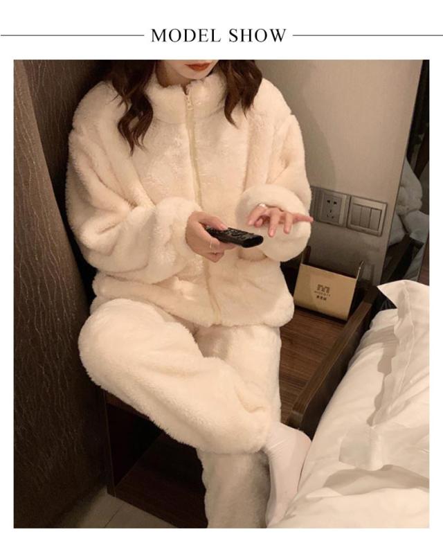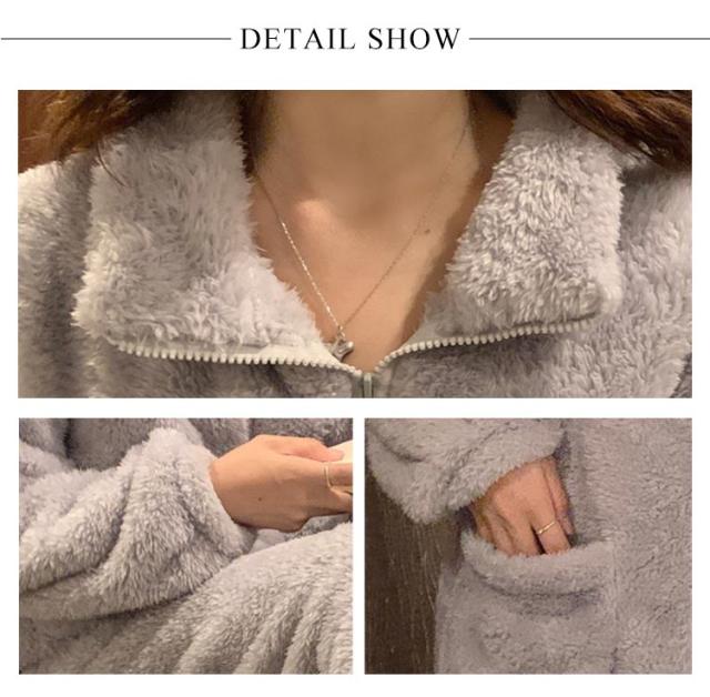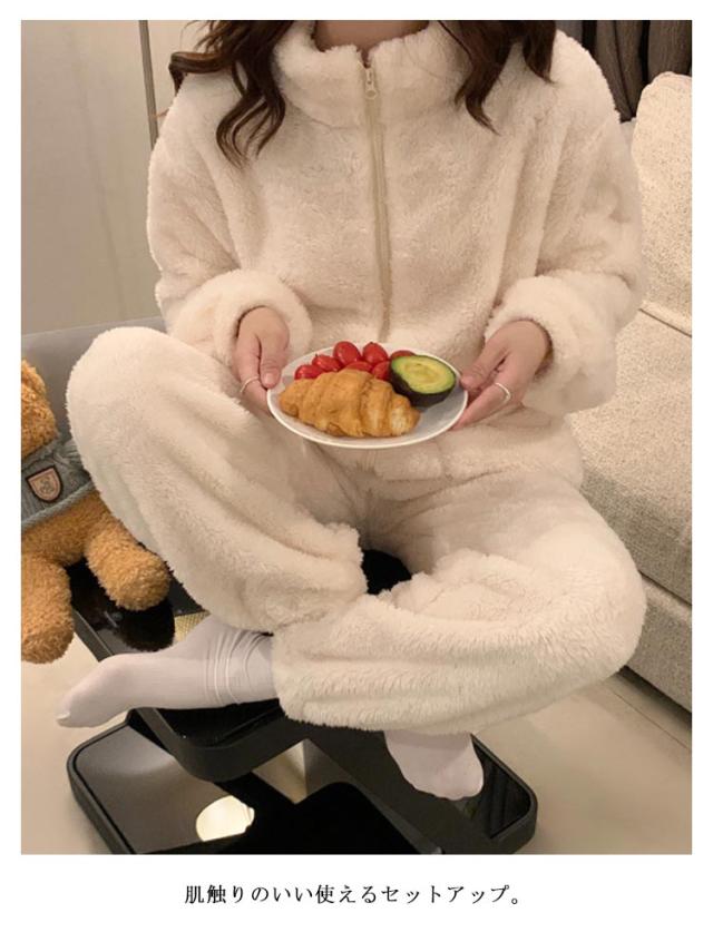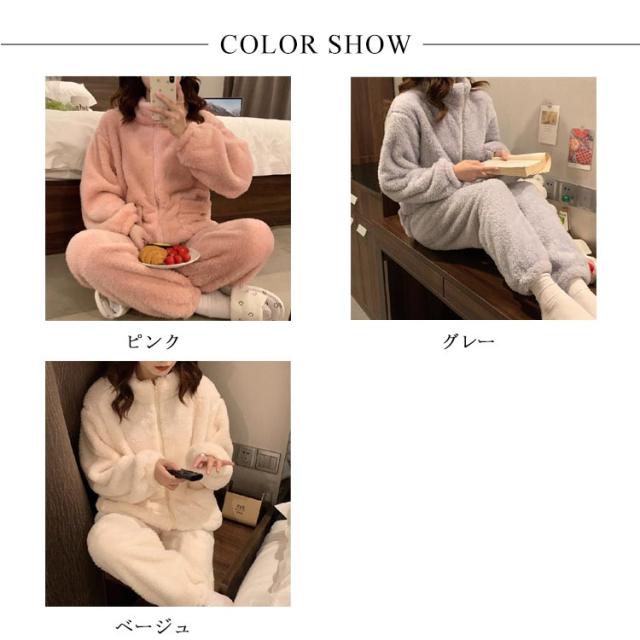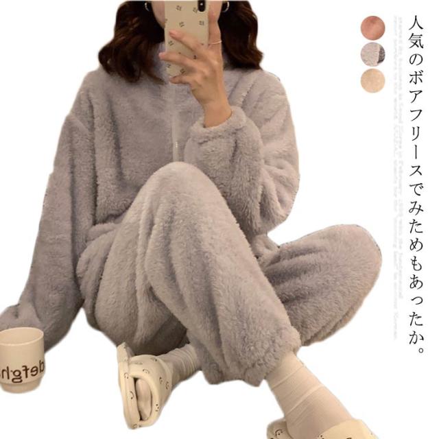 ルームウェアー パジャマ レディース パジャマ 人気 もこもこ ふわふわ 上下セット モコモコ 可愛い 長袖 部屋着 大きいサイズ セットアップ パーカー ベージュ グレー ピンク おすすめSNS人気 プレゼント ギフト クリスマス 誕生日