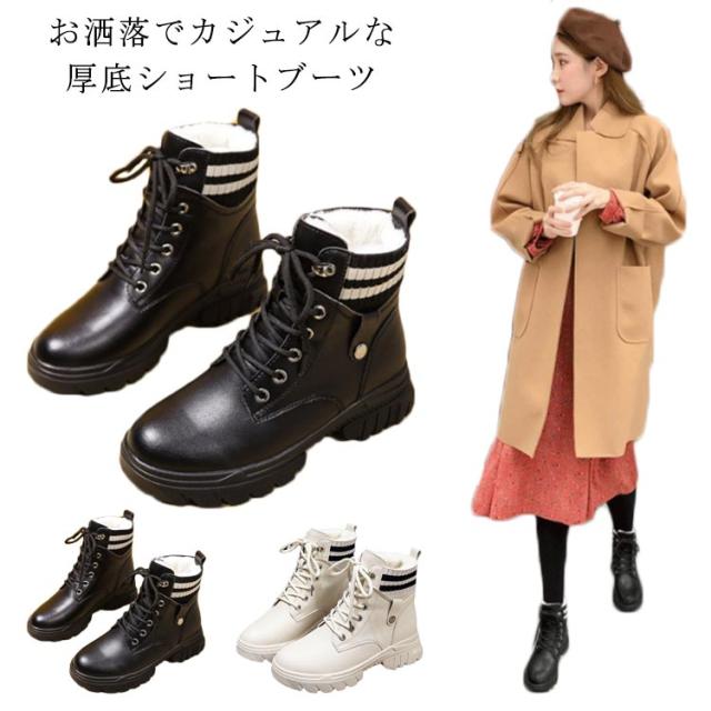 ブーツ 靴 レディース靴 レディースブーツ ニットブーツ ?みあげブーツ ムートンブーツ ショートブーツ フェイクレザー レースアップ 韓国風 オシャレ 耐久性 人気 厚さ 厚底6cm 防寒 カジュアル 着痩せ ホワイト ブラック ファッション 可愛い かわいい 美しい