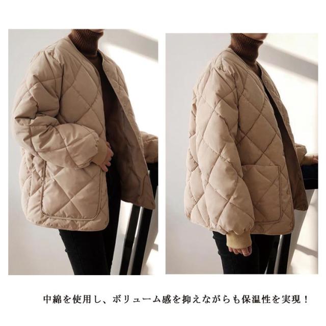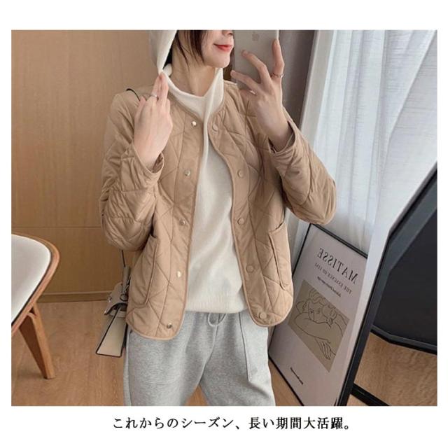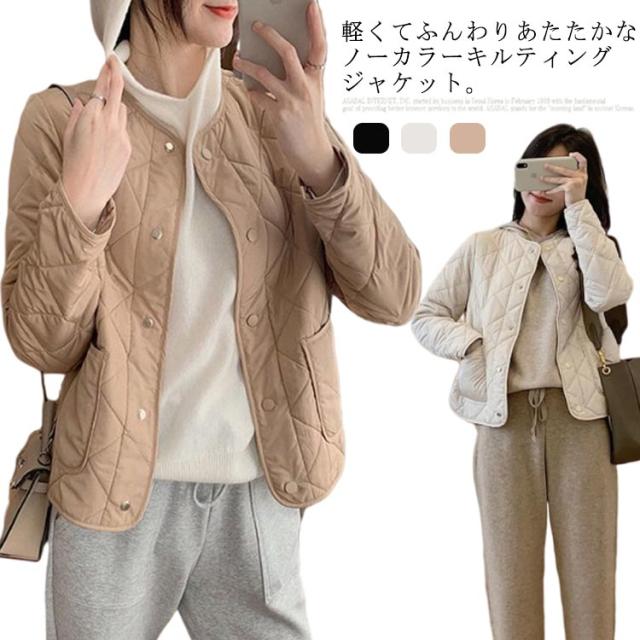 アウター ジャケット 羽織り キルティングジャケット コート 可愛い 中綿 キルティング ノーカラー ダウンジャケット 防寒 レディース 中綿コート 軽い ゆったり 体型カバー 秋冬 大きめ カジュアル ライトアウター