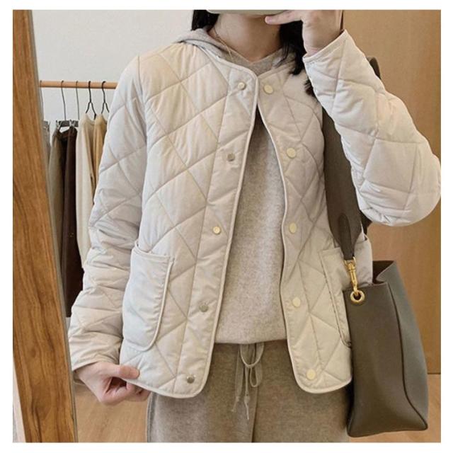 | 軽くてふんわりあたたかなノーカラーキルティングジャケット。 中綿を使用し、ボリューム感を抑えながらも保温性を実現! ノーカラーだからカジュアルになり過ぎず、女性らしいコーデも。 シンプルだけれど着こなし力バツグン。 これからのシーズン、長い期間大活躍。 | |