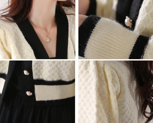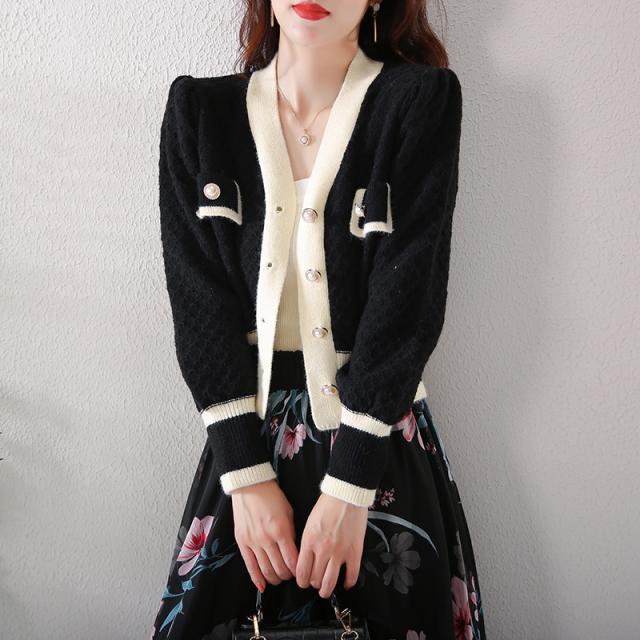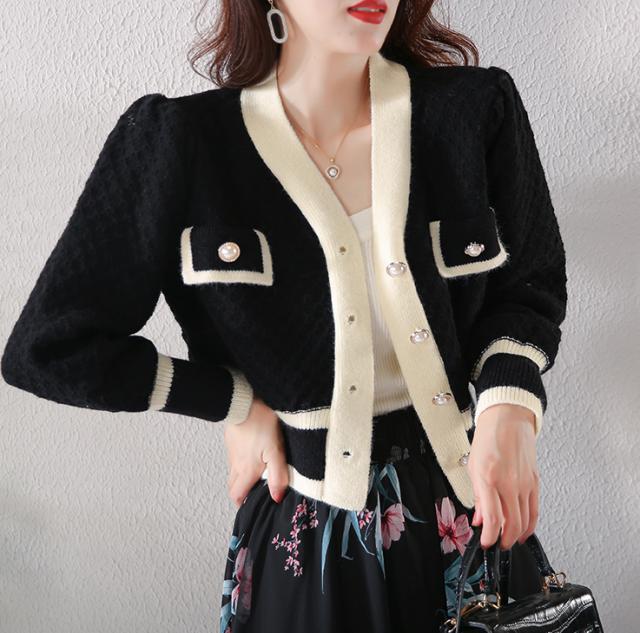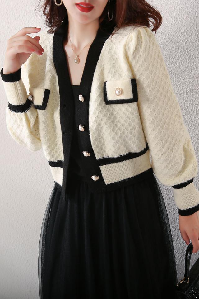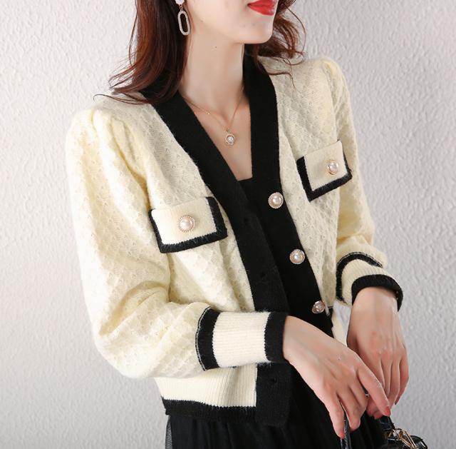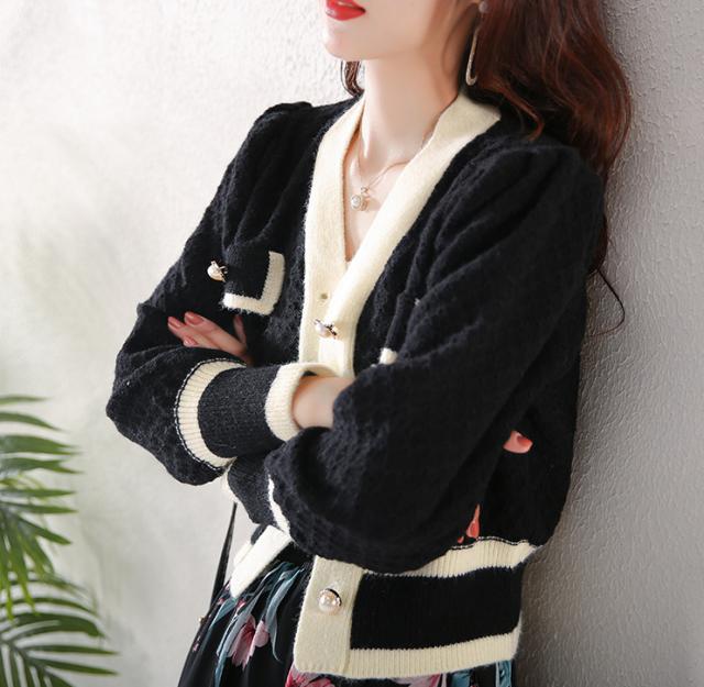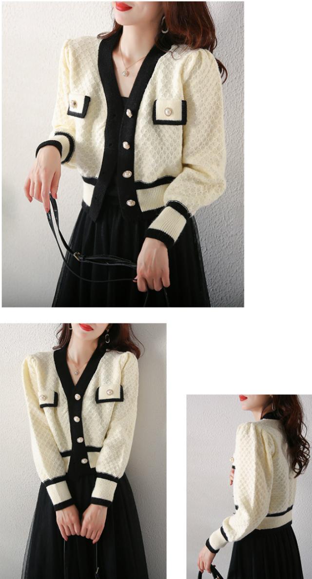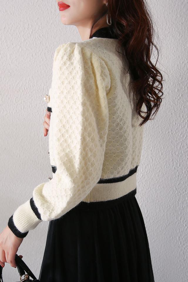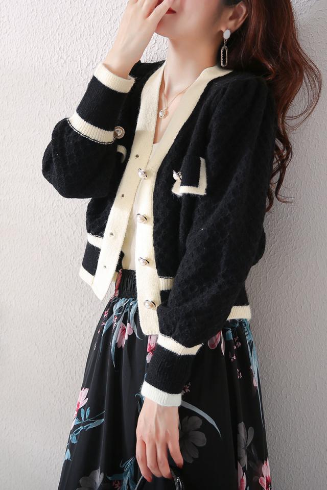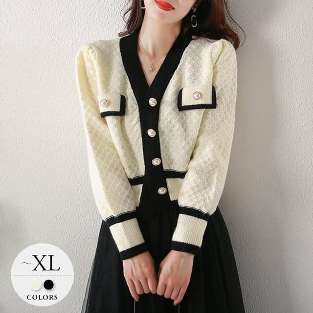 カーディガン トップス レディース 長袖 Vネック 前ボタン パール 清楚スタイル エレガント ホワイト ブラック ナチュラル おしゃれ