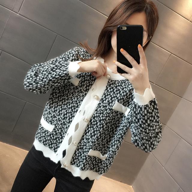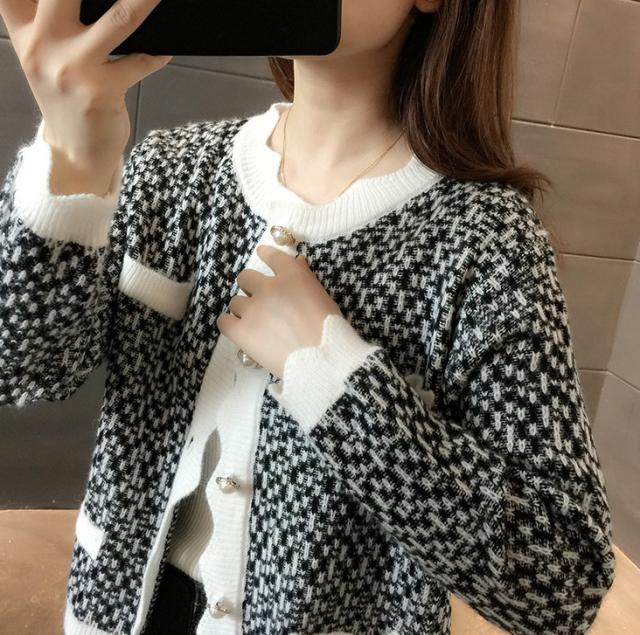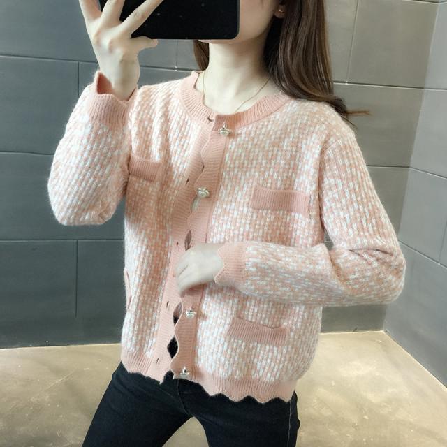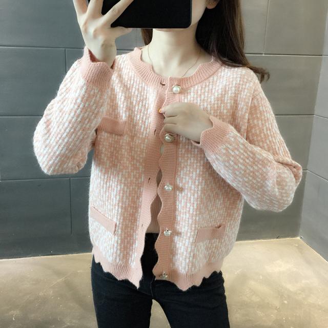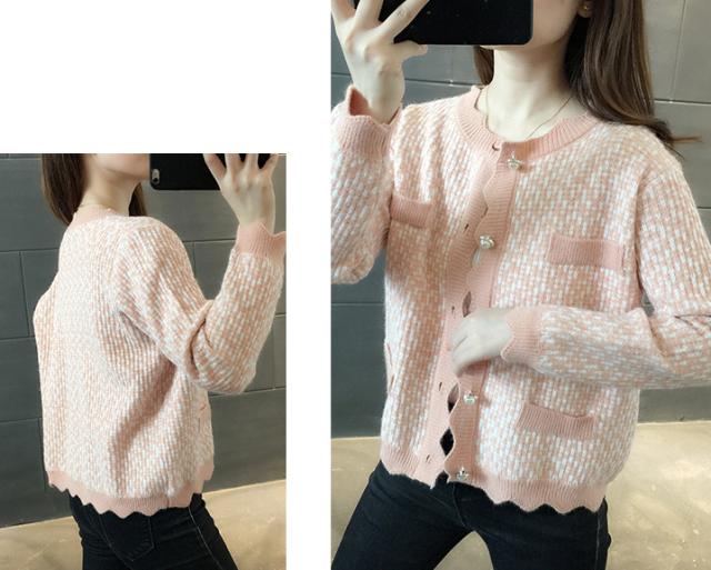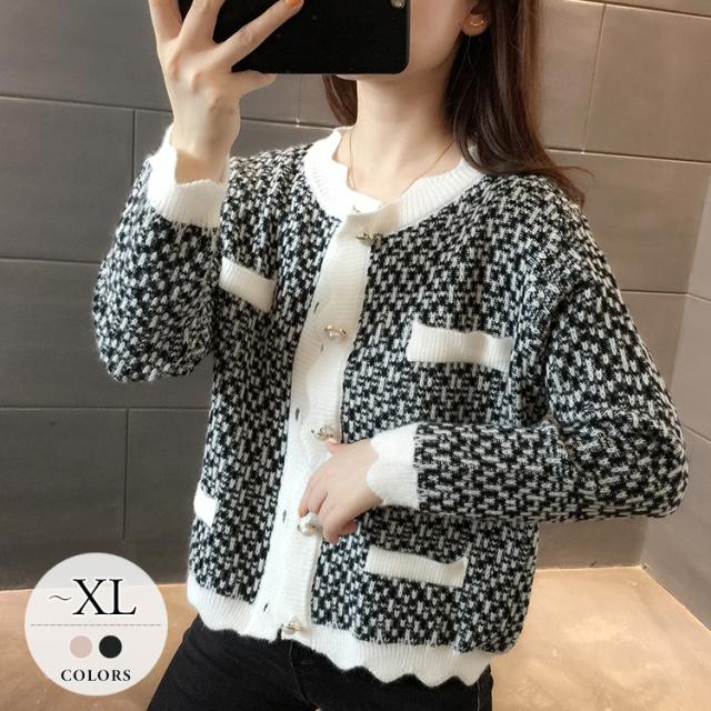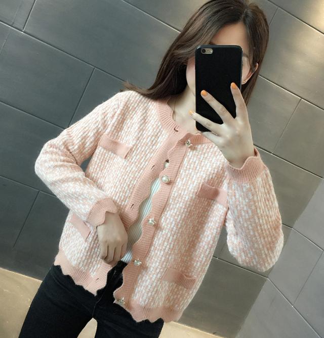 カーディガン トップス レディース 長袖 ラウンドネック 前ボタン パール 清楚スタイル おしゃれ ピンク ブラック シンプル イベント清楚 お出かけ