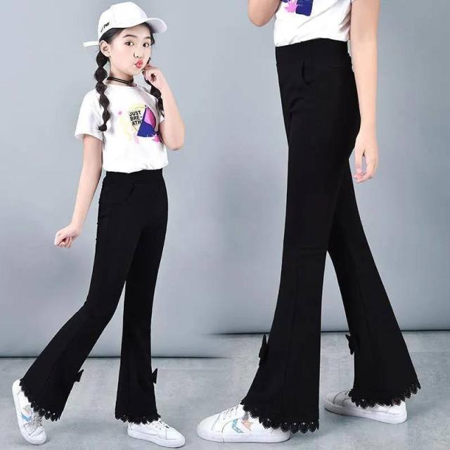 キッズ ロングパンツ 秋冬 ガウチョパンツ ワイドパンツ 女の子 子供パンツ ストレートパンツ 綿 秋冬 無地 ロング丈パンツ 長ズボン 送料無料 ボトムス ジュニア ストレート ウエストゴム レースパンツ フレアパンツ シンプル カジュアル おしゃれ