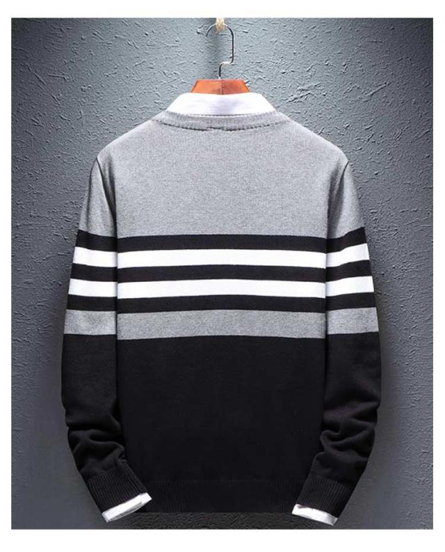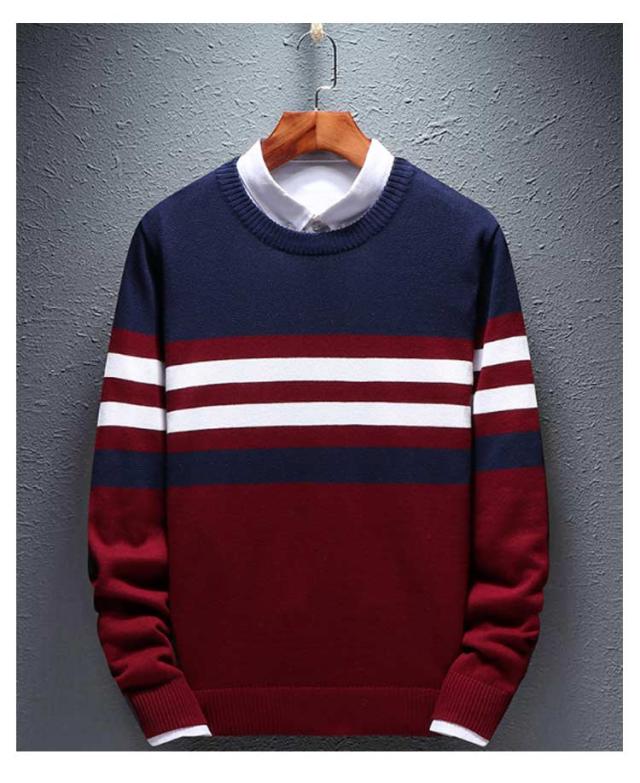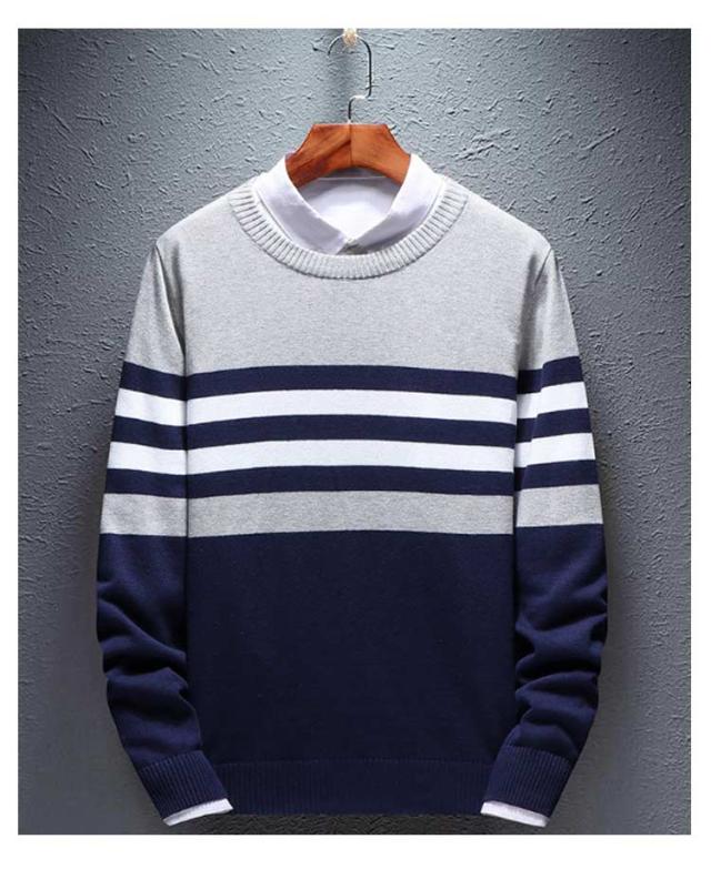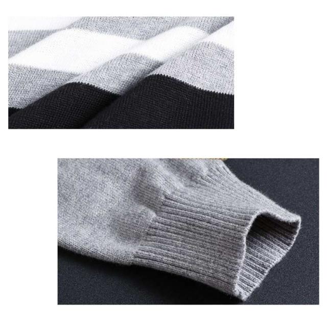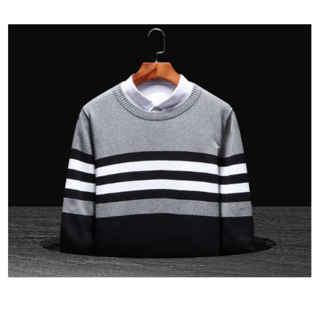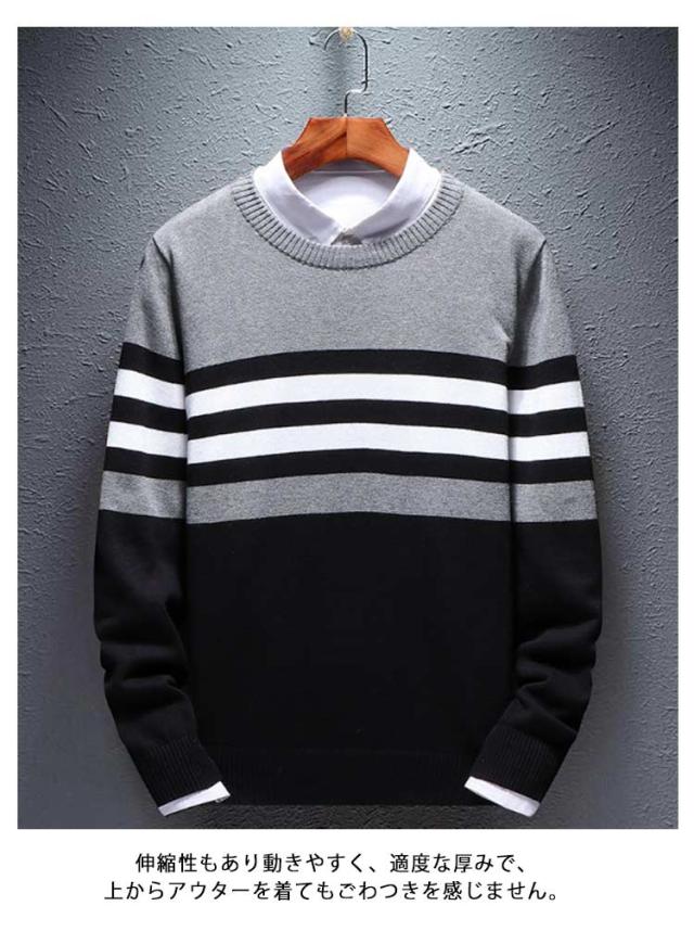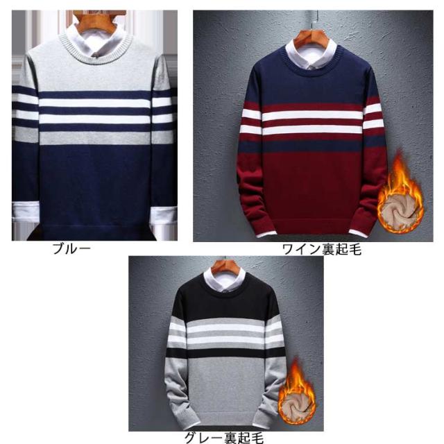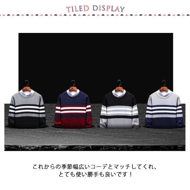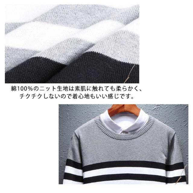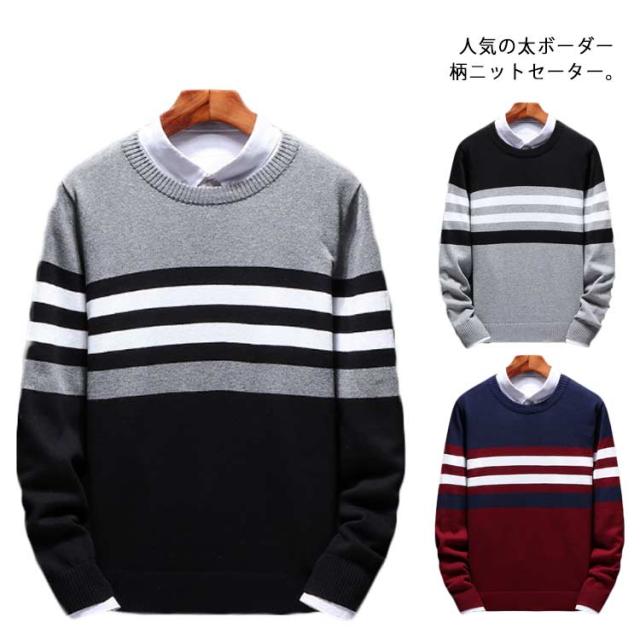 セーター メンズニット ニット カジュアル ボーダー柄 プルオーバー トップス ニット セーター ラウンドネックニット 全4色×5サイズ!裏起毛 綿100% 太ボーダー 秋冬 冬 新作 男性 クルーネックセーター