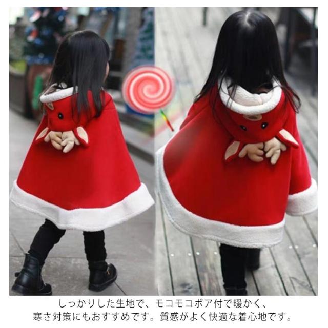 サンタ コスチューム クリスマス 秋冬 厚手 ポンチョ 防寒 子供服 仮装 コスプレ 110 モコモコ 冬 キッズ 起毛 カバー アウター 羽織り ギフト マント 出産祝い ケープ プレゼント あったか トナカイ 防寒着 寒さ対策 80 90 100 衣装
