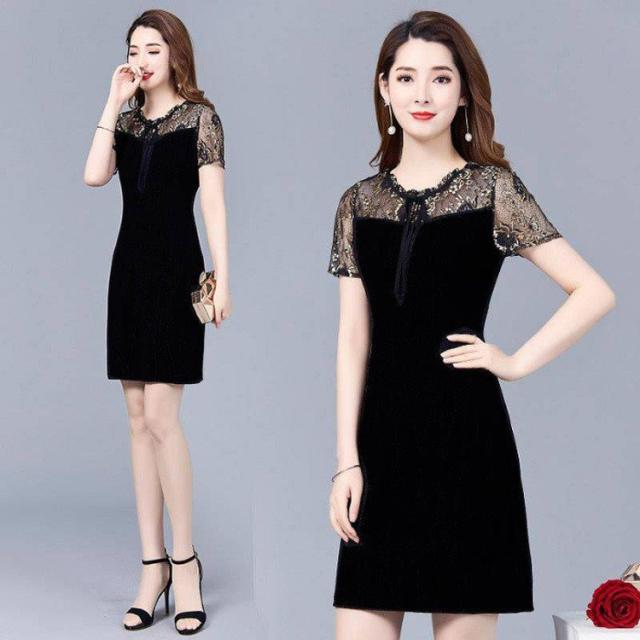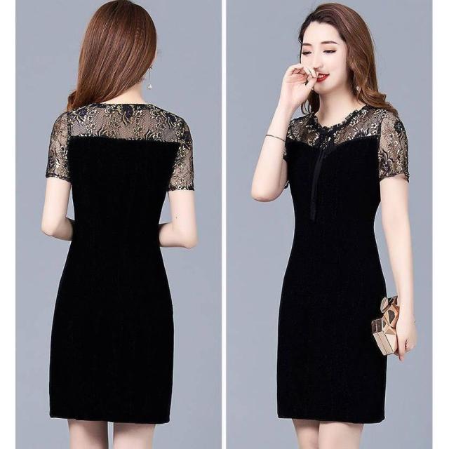 半袖ワンピース レディース 婦人服 カジュアルドレス 袖レース シースルー リボン タイト 膝上丈 ミニ丈 おしゃれ 上品