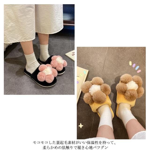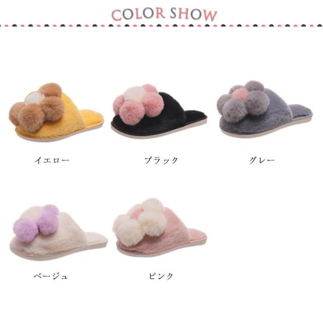 | ふわふわした可愛さ満点の冬スリッパ。 モコモコした裏起毛素材がいい保温性を持って、柔らかめの肌触りで履き心地バツグン キュートなポンポン飾りで女の子らしい可愛さを演出してくれます。 柔軟性に優れたTPRソールを使用し、凸凹入るソールで滑り止め効果もあります。 厚みのあるソールで床からの冷えを遮断してくれます | |