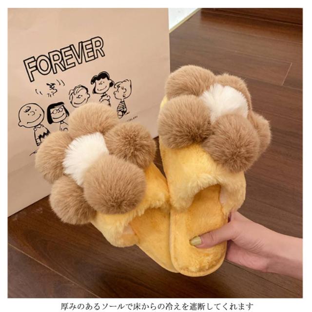 送料無料 レディース ルームシューズ ファースリッポン ボアスリッパ 秋冬 冬スリッパ ルームスリッパ フラットソール かわいい フェイクファー 裏起毛 厚手 もこもこ ふわふわ あったか 室内履き 可愛い