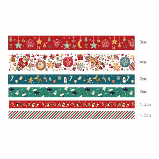クリスマス マスキングテープ 3m×6巻セット 和紙テープ 手帳用 プレゼント包装 DIY工芸品 ノートの装飾に使える デコレーション クラフト ギフトパッケージ 手工芸品