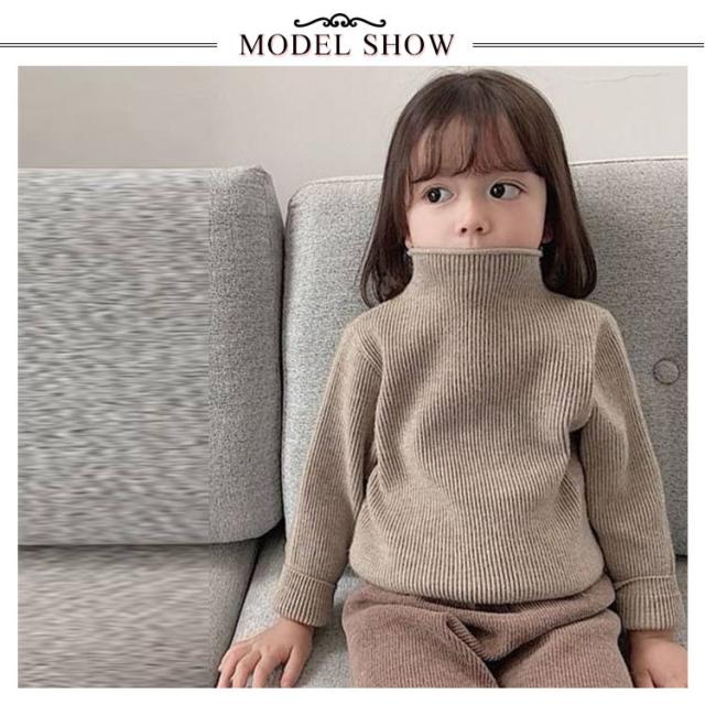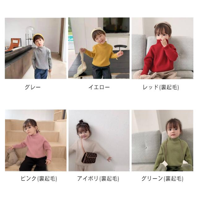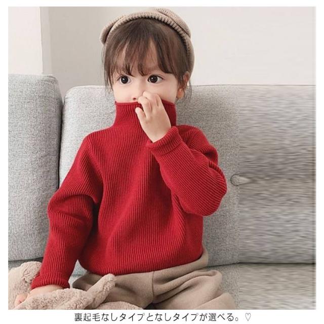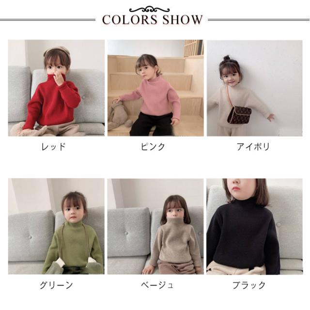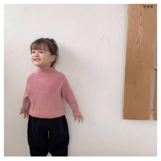 キッズ タートルネック ニット 裏起毛 セーター 女の子 長袖 無地 ゆったり トップス 子供服 こども 防寒 新作 秋冬 ピンク 80-140cm