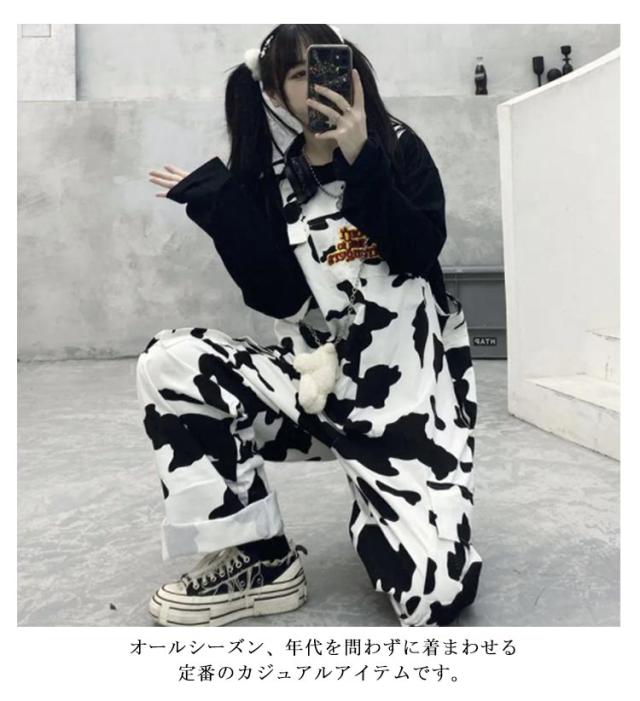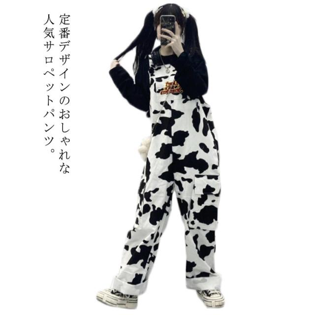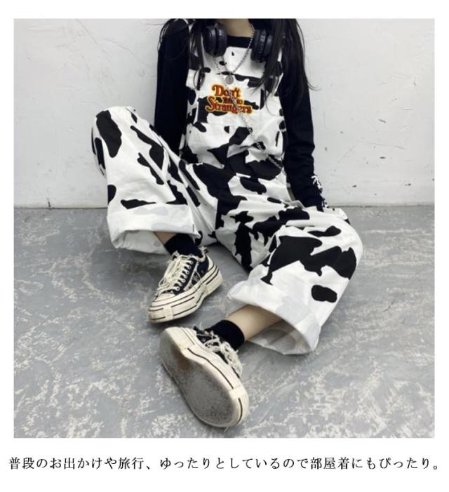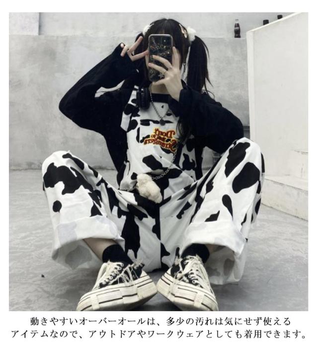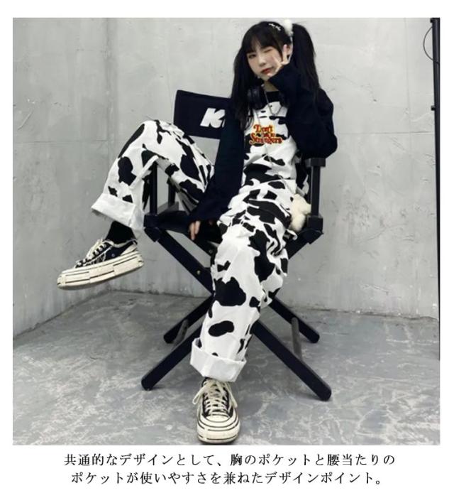 オーバーオール 牛柄 サロペット デニム レディース オールインワン デニムパンツ 春夏 秋冬 大きいサイズ 可愛い ゆったり カジュアル 白黒 ヒップホップ ダンス服 韓国 原宿系