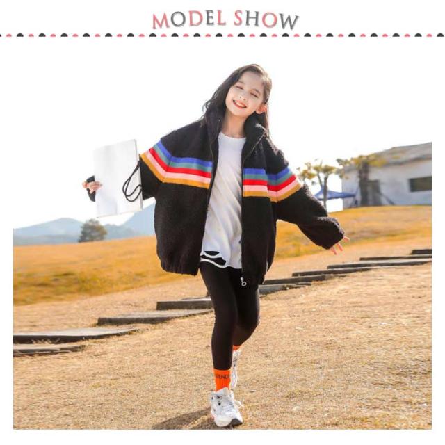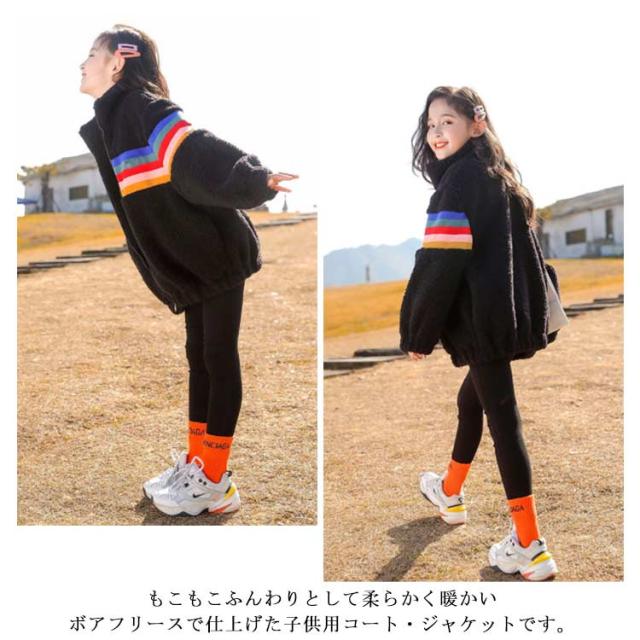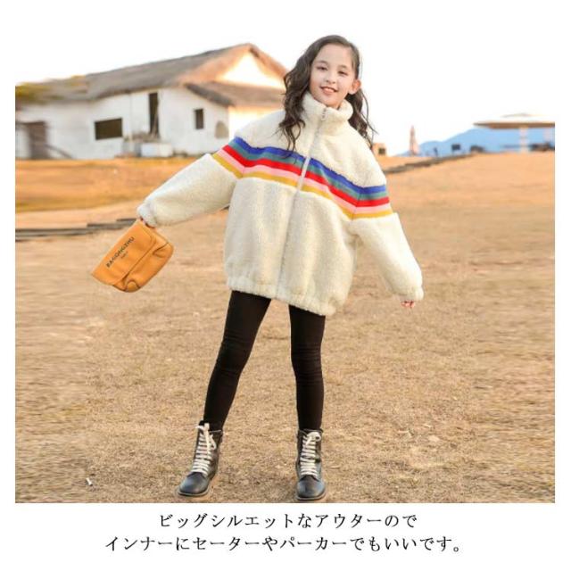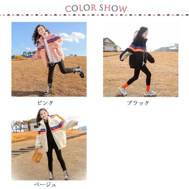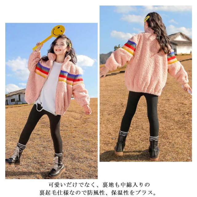 ボアコート キッズ アウター 女の子 中綿 ボアジャケット ボア コート アウター ジャケット 子供コート 子供服 キッズ レインボー 虹 立ち襟 厚手 秋 冬 韓国 ジュニア おしゃれ 秋冬 暖かい 防寒