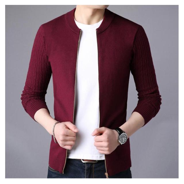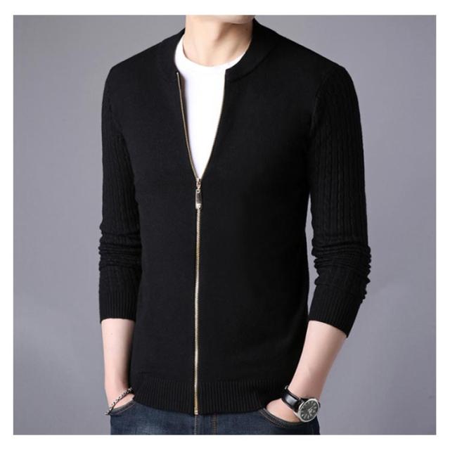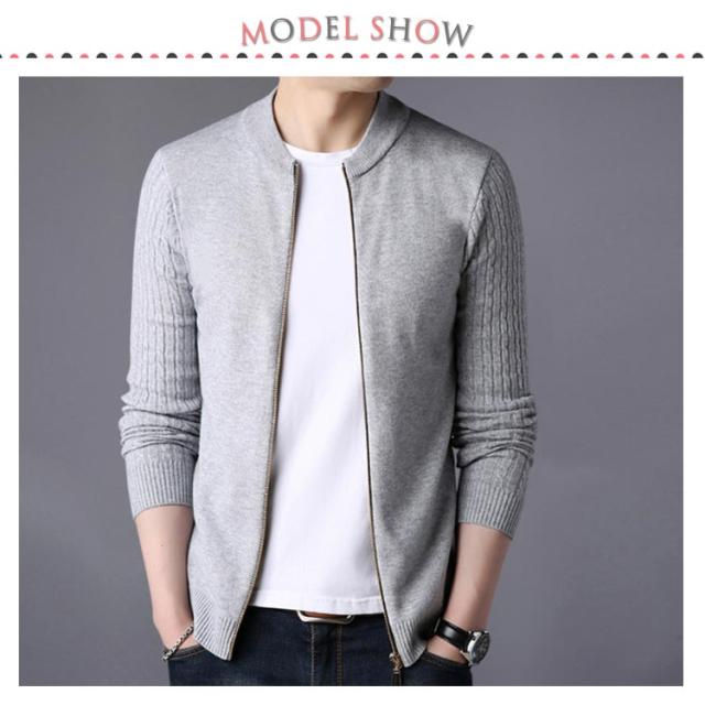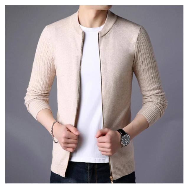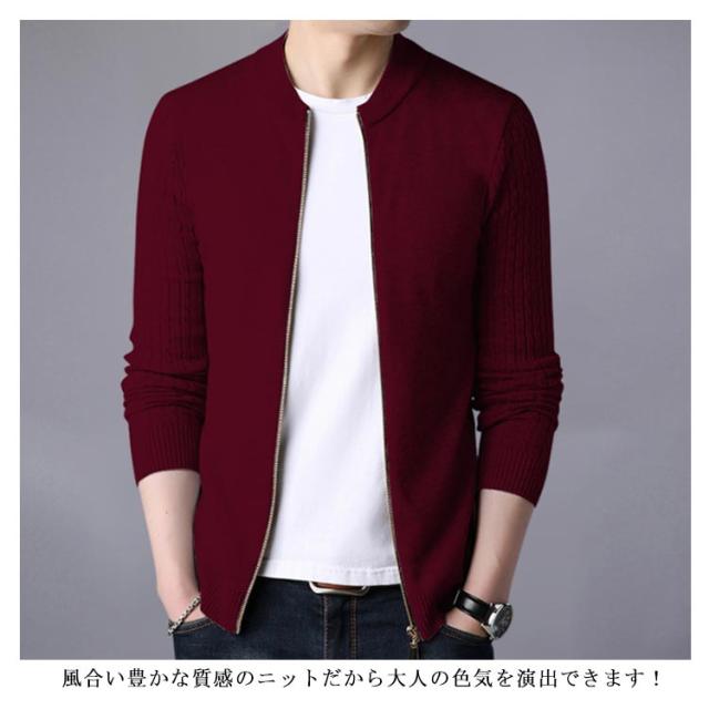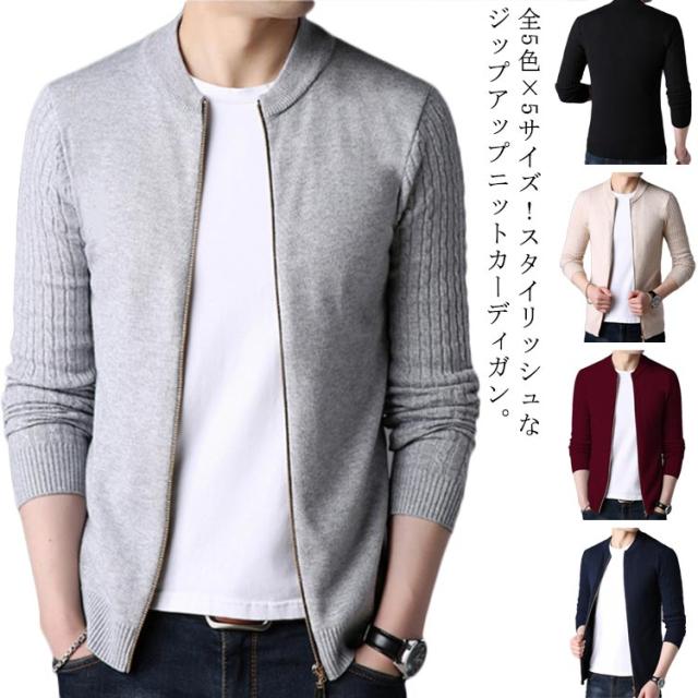 ニットジャケット 秋服 ニットカーディガン ケーブル編み袖 メンズ 立ち襟 ジップアップ ジャケット ニット アウター 長袖 春服 全5色×5サイズ!カーディガン