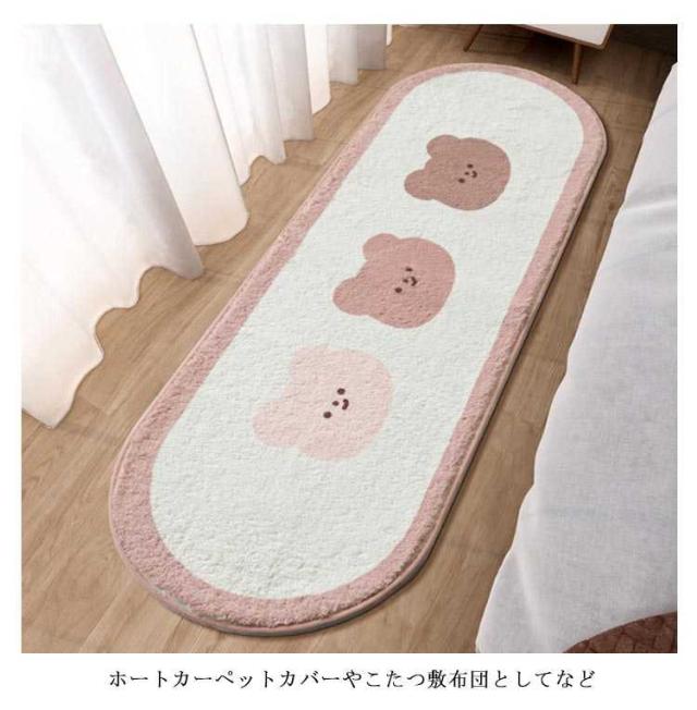 ラグ カーペットホートカーペット楕円形 かわいい 猫柄 犬柄 くまちゃん柄 ウサギ柄 花柄 雑貨 楕円 ラグ ラグマット 丸い形 四角形 洗える フランネル 選べる14柄ラグ おしゃれ 北欧 フランネル カーペット 約60*160cm 冬 床暖房対応 春 夏 秋 冬