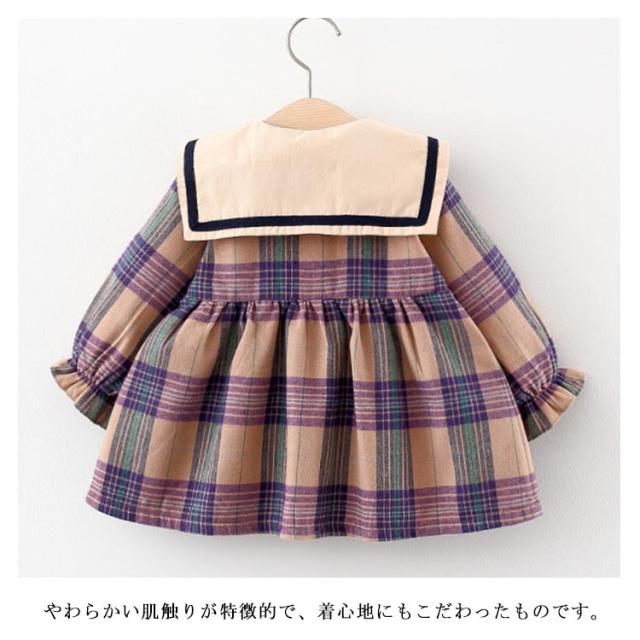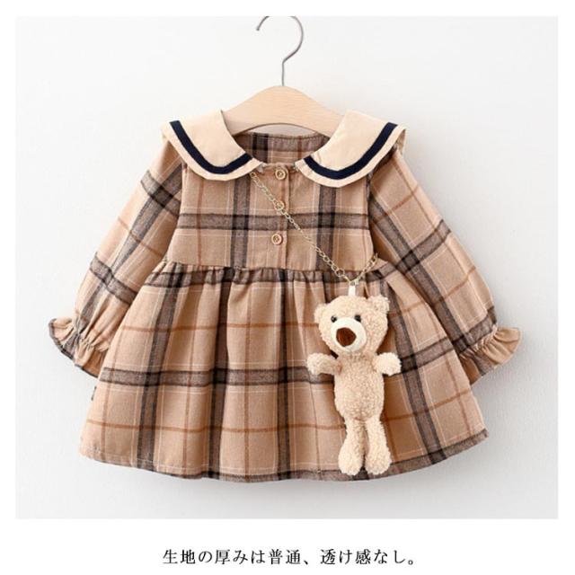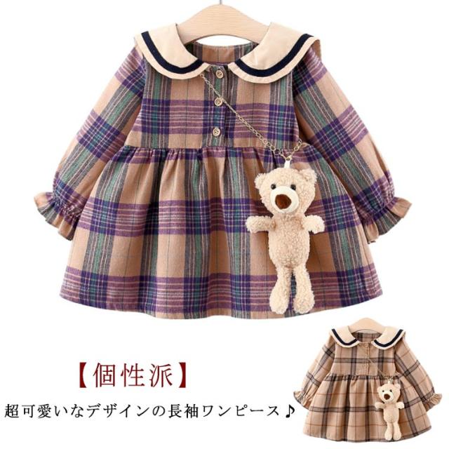 チェックワンピース 子供服 ワンピース ドレス 長袖 女の子 キッズ ワンピ ジッパー付き ラウンドネック チェック柄 チュニック オシャレ 可愛い 春 秋 幼稚園 保育園 小学生 80 90 100 110