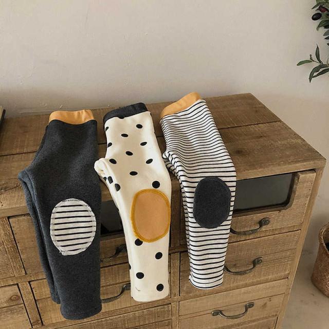 子供服 裏起毛 裏ボア ストレッチ レギンス パンツ 長ズボン ボトムス 女の子 男の子 ハイウエスト カジュアル ナチュラル ストライプ ドット柄 子供 子ども こども 秋服 冬服 ひざ掛け付き