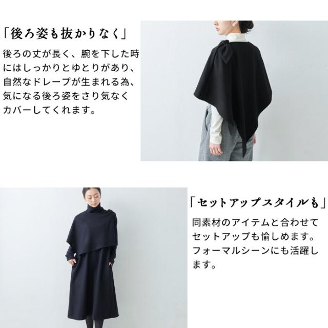 圧縮ウール100% ケープ 日本製 / レディース ポンチョ 40代 50代 60代 女性 フォーマル ラフ 紺 黒 七五三 母 ママ 入学式 卒業式 ミセス ウール 大きめ ゆったり 防寒 冬 秋 暖かい