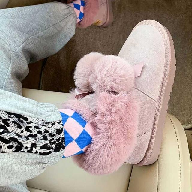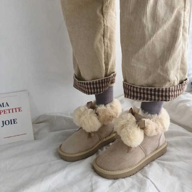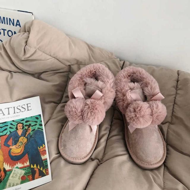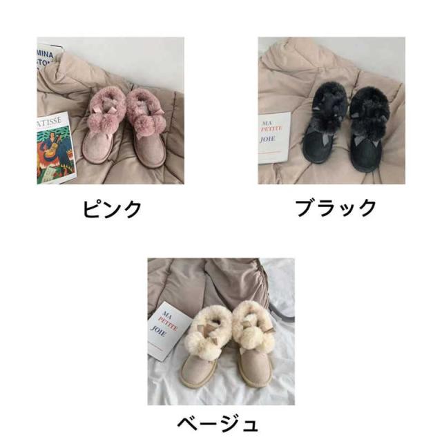 ポンポン付き ムートンブーツ レディース ショートブーツ ファームートン 靴 防寒 痛くない 歩きやすい 滑り止め 裏起毛 あったか 冬物 フラットヒール もこもこ ふわふわ 大きいサイズ 通学