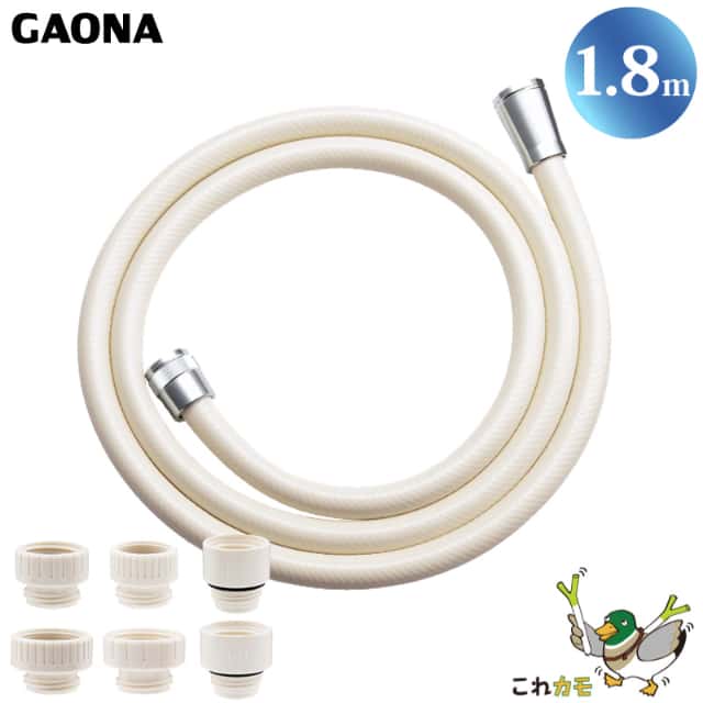 GAONA シャワーホース 1.8m 取替用 アイボリー GA-FF010 防カビ仕様 工具不要 アダプター6個同梱 回転式 ねじれない 低臭 日本製 カクダイ これカモ