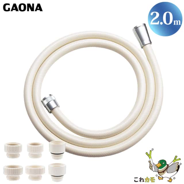 GAONA シャワーホース 2.0m 取替用 アイボリー GA-FF011 防カビ仕様 工具不要 アダプター6個同梱 回転式 ねじれない 低臭 日本製 カクダイ これカモ