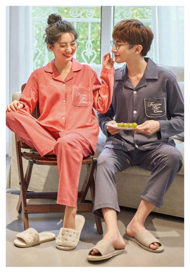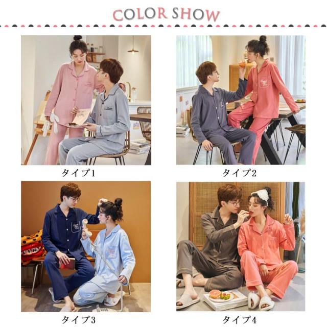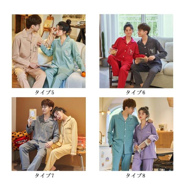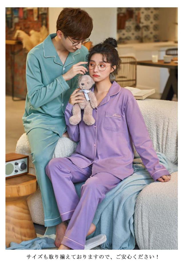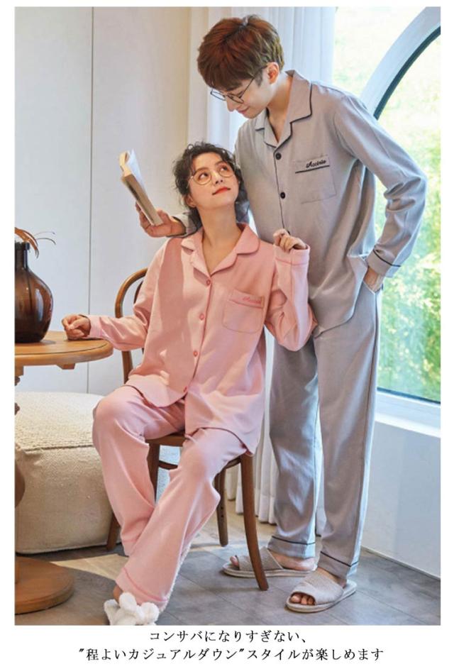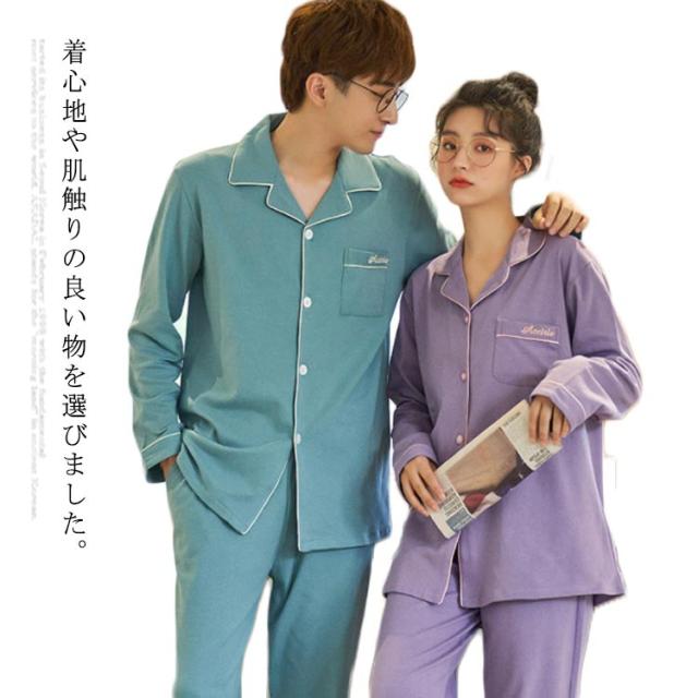 パジャマ ルームウェア メンズ ペアルック 上下セット ナイトウェア 男女ペア カップル 100%綿 綿 長袖 前開き 男性 男 セットアップ ペア 部屋着 大人 吸汗 速乾 コットン 春 秋 冬 入院 敬老の日 ギフト 母の日 父の日 誕生日 プレゼント