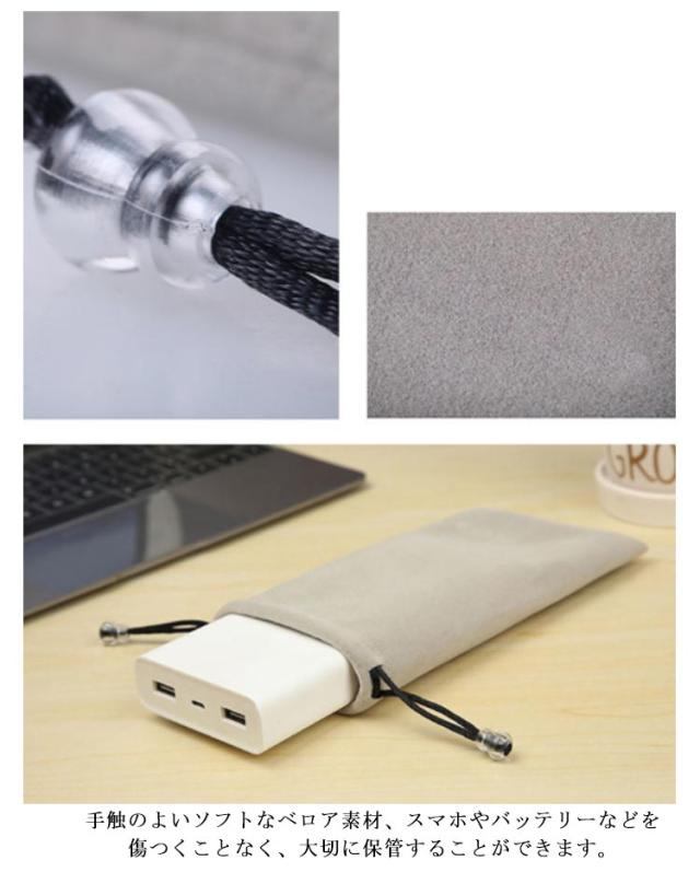 2個入り バッテリー収納ポーチ 送料無料 スマホポーチ 巾着袋 撥水 ICカード イヤホン 撥水 アクセサリー ベロア