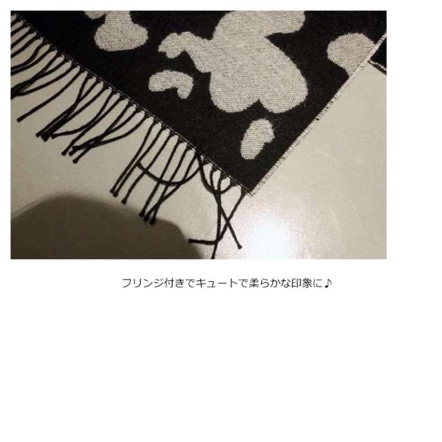 | 注目のモチーフ柄リバーシブル大判マフラーが新入荷♪ 巻くだけでコーディネートの主役になれるマフラーです。 軽いのに暖かくしっとりとした優しい肌触りに仕上がっています。 温かみのある起毛感で保温性も拔群! ボリューム感があるので、巻いて小顔効果も抜群!! フリンジ付きでキュートで柔らかな印象に♪ 巻き方のアレンジでコーデの幅が広がります。 | |