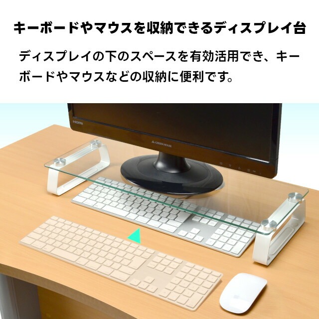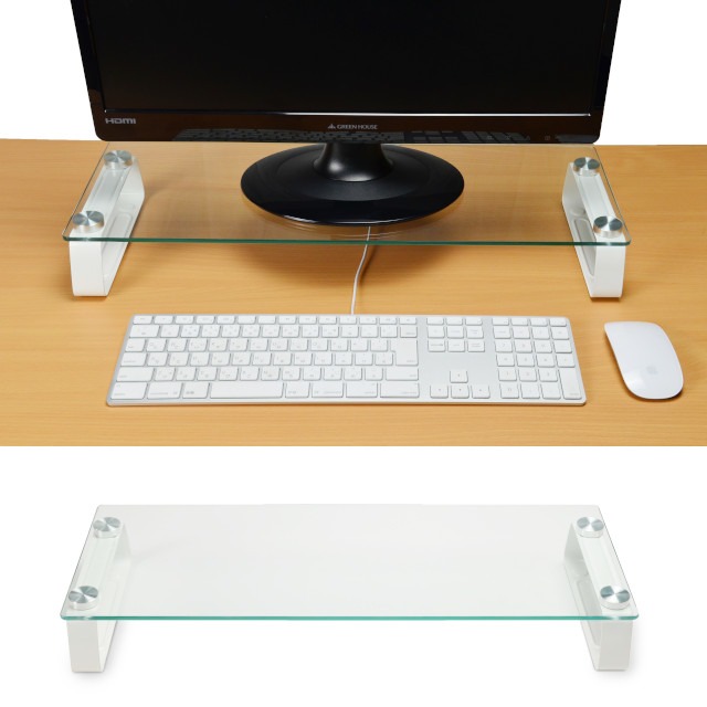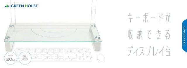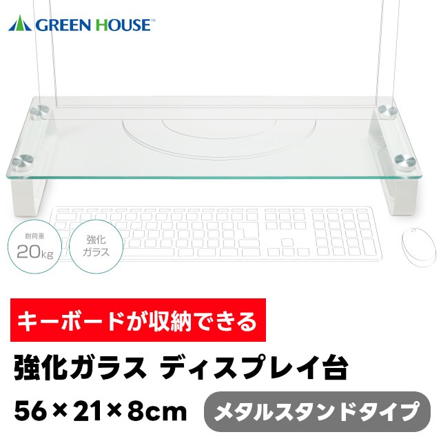 強化ガラス ディスプレイ台 メタルスタンドタイプ GH-DKBC-CL 56×21×8cm【GREEN HOUSE グリーンハウス モニタースタンド モニター台 ディスプレイ台 ディスプレイスタンド モニターテーブル デスク テーブル ギフト 母の日 父の日 敬老の日 クリスマス Xmas】